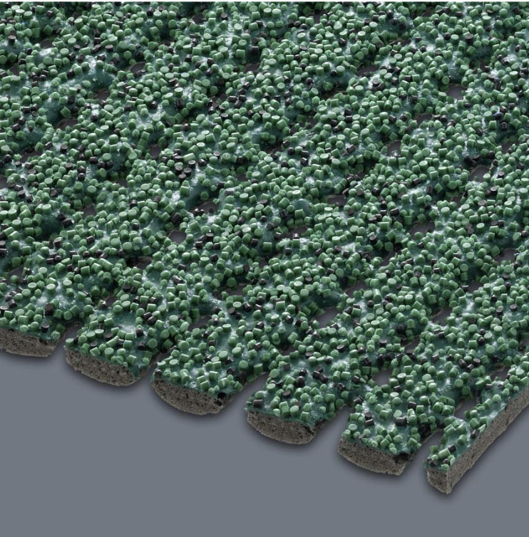 - Als rutschsicher und angenehm weicher Bodenbelag hinter Theken, in Großküchen, Naßräumen, Verkaufsräumen und überall, wo Rutschsicherheit benötigt wird.