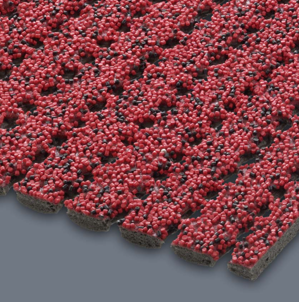 - Zusammensetzung: PES/Glasgarn Gewebe beidseitig beschichtet mit spezieller PVC-Paste, Oberfläche mit PVC-Granulat bestreut. Stärke: ca. 6,0 - 7,0 mm - Anwendung Temperaturbereich:-25 ºC bis +60 ºC