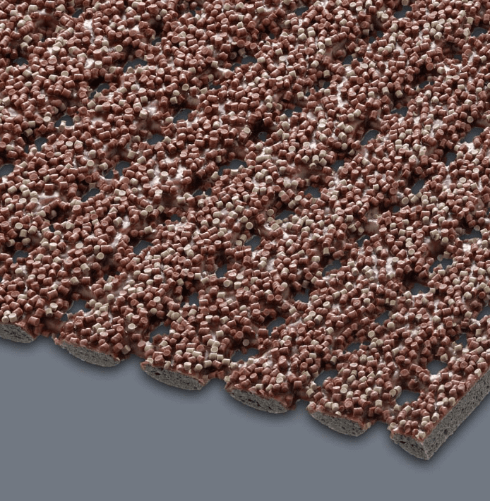 - Zusammensetzung: PES/Glasgarn Gewebe beidseitig beschichtet mit spezieller PVC-Paste, Oberfläche mit PVC-Granulat bestreut. Stärke: ca. 6,0 - 7,0 mm - Anwendung Temperaturbereich:-25 ºC bis +60 ºC