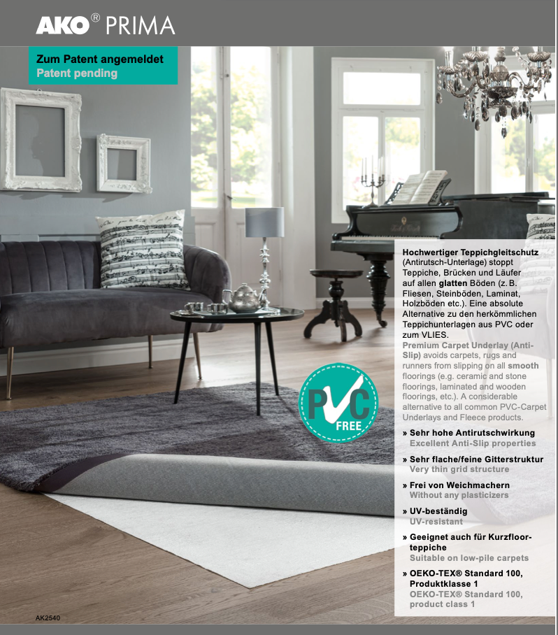 AKO PRIMA Hochwertiger Teppichgleitschutz (Antirutsch-Unterlage) Umweltfreundlich