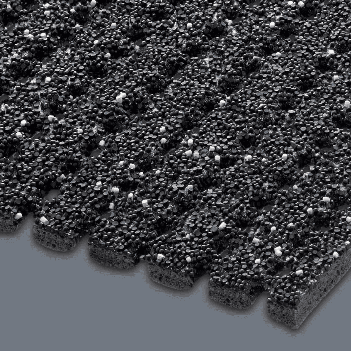 - Als rutschsicher und angenehm weicher Bodenbelag hinter Theken, in Großküchen, Naßräumen, Verkaufsräumen und überall, wo Rutschsicherheit benötigt wird.