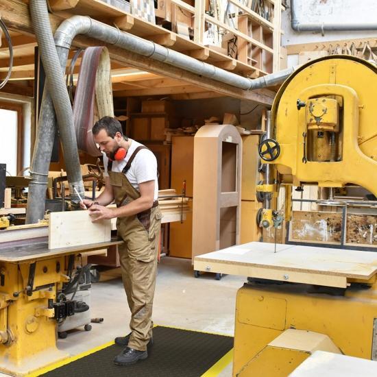 Hochwertige Anti-Ermüdungsmatte für individuelle Arbeitsstationen in industriellen Schwerlastbereichen.