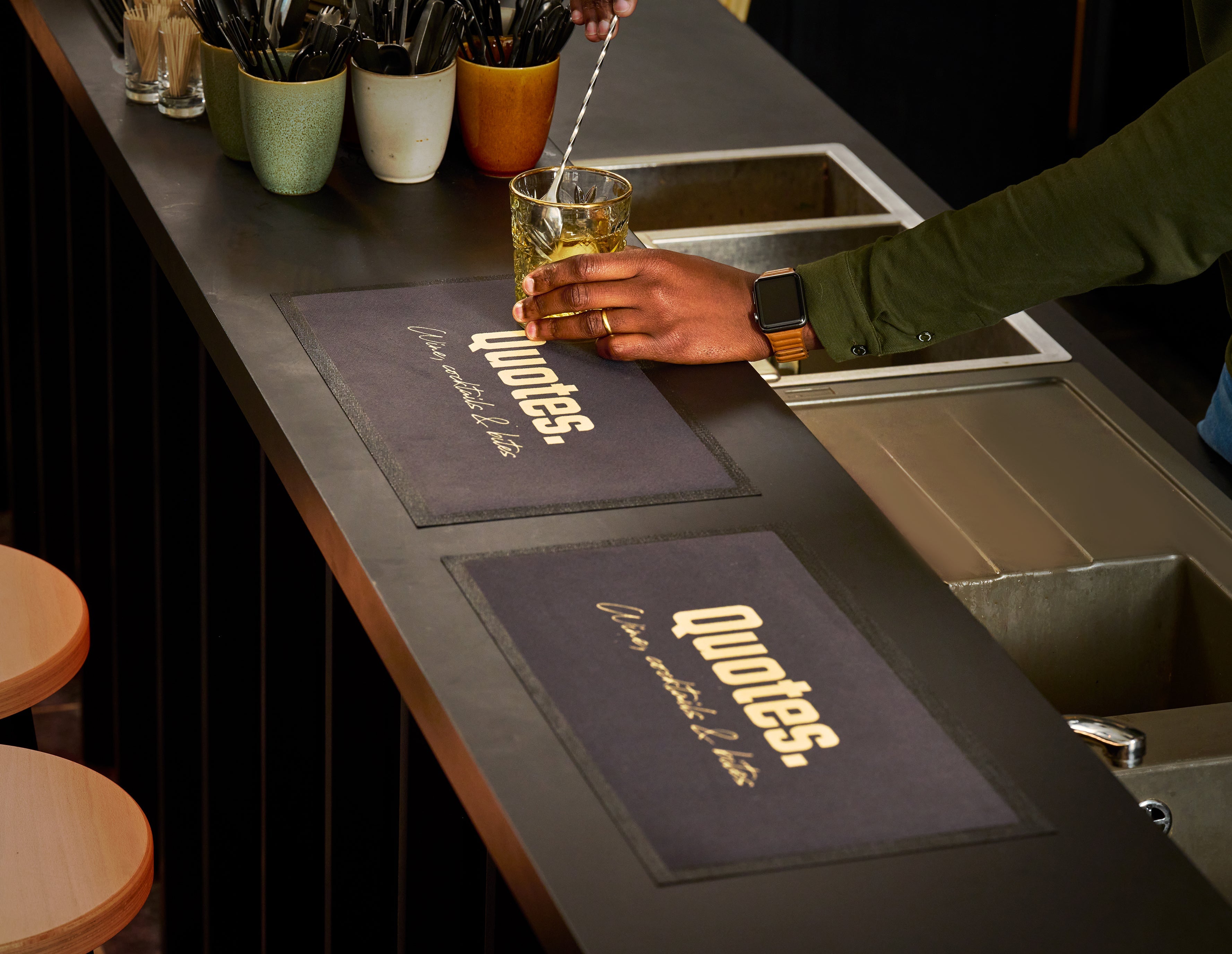 Jede Barmatte ist eine hochwertige Thekenmatte, die nach Ihren Wünschen individuell maßgefertigt wird, perfekt mit den Farben Ihrer Einrichtung harmoniert