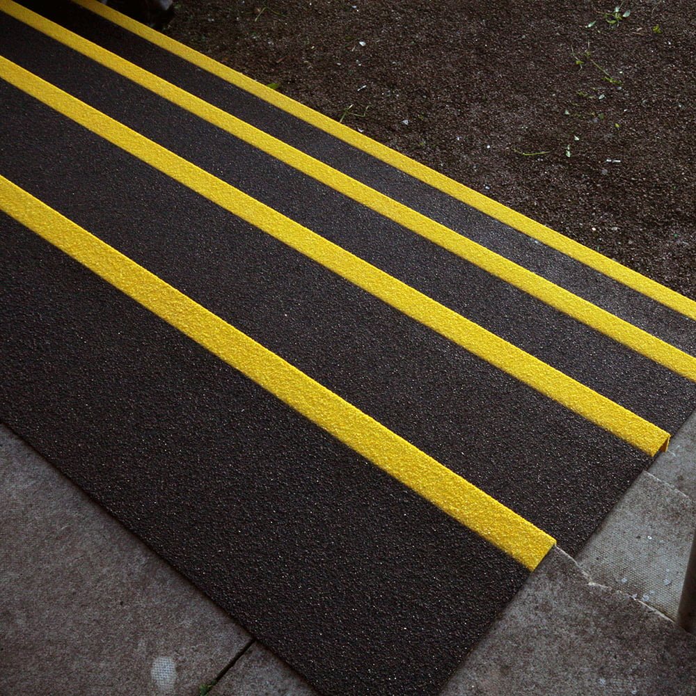 - Flächige Silikonkarbid-Oberfläche für verstärkte Rutschsicherheit auf Treppenstufen.