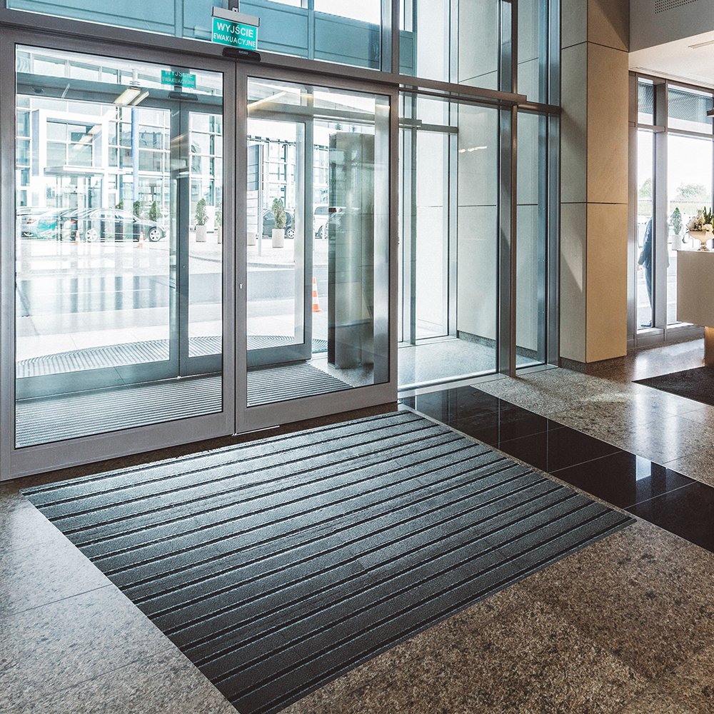 - Geschlossene Oberfläche der Schmutzfangmatte – Dreck fällt nicht durch die Eingangsmatte und macht Reinigung der Sauberlaufzone eine effiziente Angelegenheit.