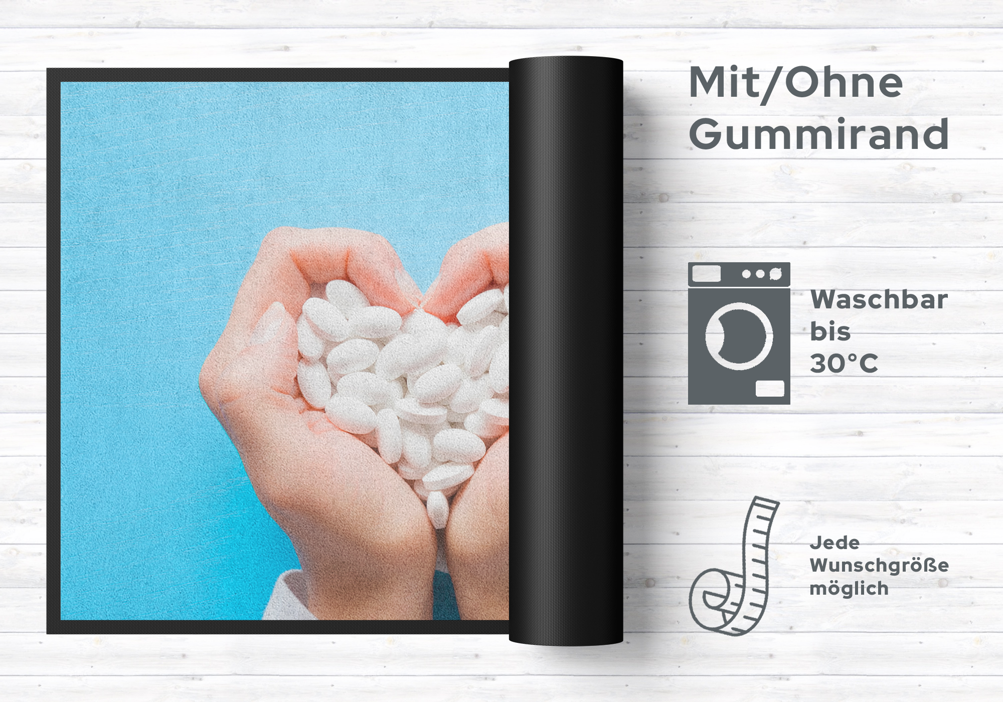 Mit dieser Fussmatte 11448 zaubern Sie nicht nur Ihren Besuchern ein Lächeln ins Gesicht. Diese sehr hochwertige Türmatte ist reissfest, knitterfrei, waschbar. Da sie mit 7 mm Gesamthöhe sehr flach ist, passt sie unter fast jede Tür. Die Fussmatte ist Schadstoffgeprüft und für Allergiker geeignet. Sie erhalten 5 Jahre Herstellergarantie.