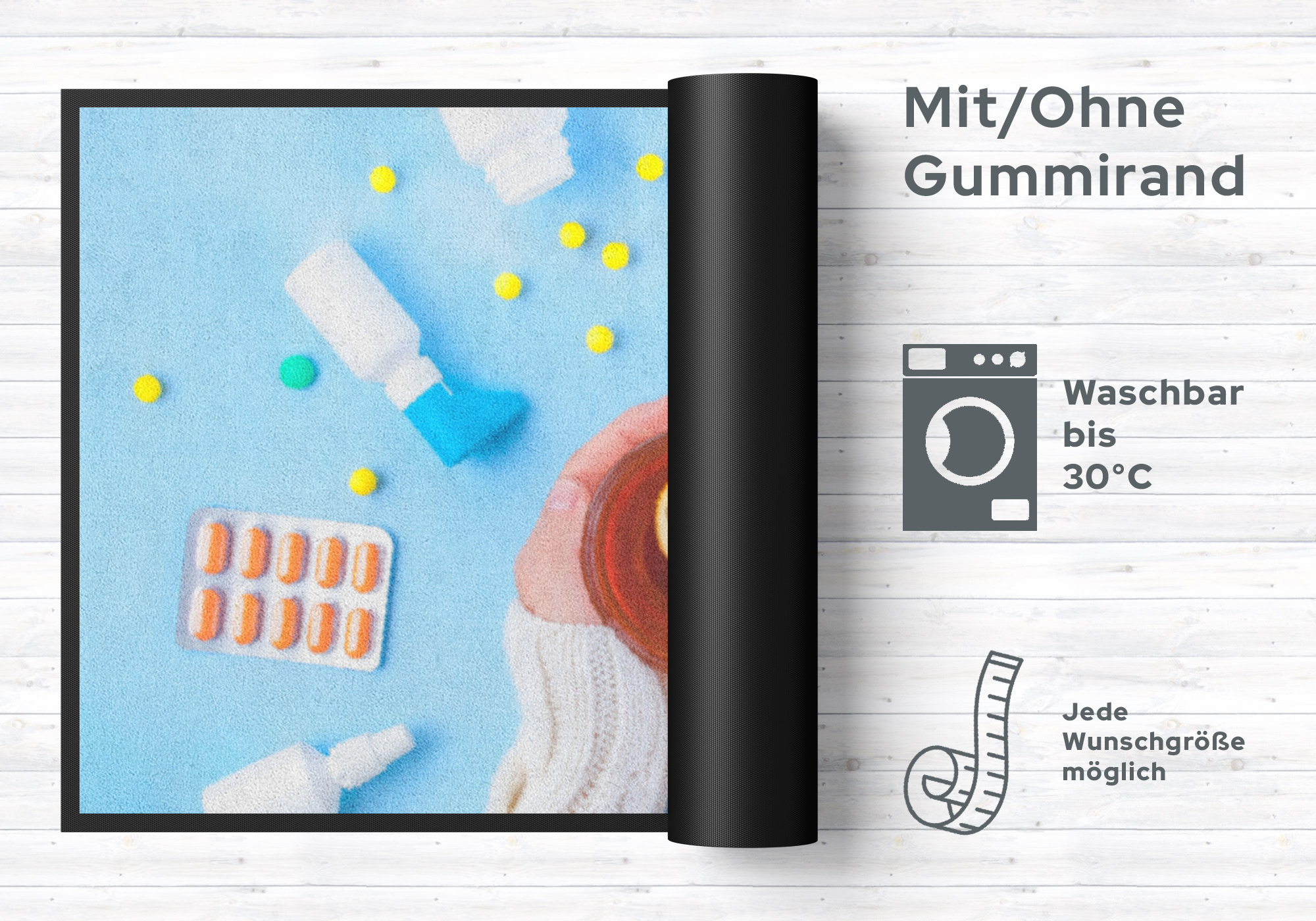 Mit dieser Fussmatte Apotheke 6158 zaubern Sie nicht nur Ihren Besuchern ein Lächeln ins Gesicht. Diese sehr hochwertige Fussmatte ist reissfest, knitterfrei, waschbar. Da sie mit 7-8 mm Gesamthöhe sehr flach ist, passt sie unter fast jede Tür. Die Fussmatte ist Schadstoffgeprüft und für Allergiker geeignet. Sie erhalten 5 Jahre Herstellergarantie.