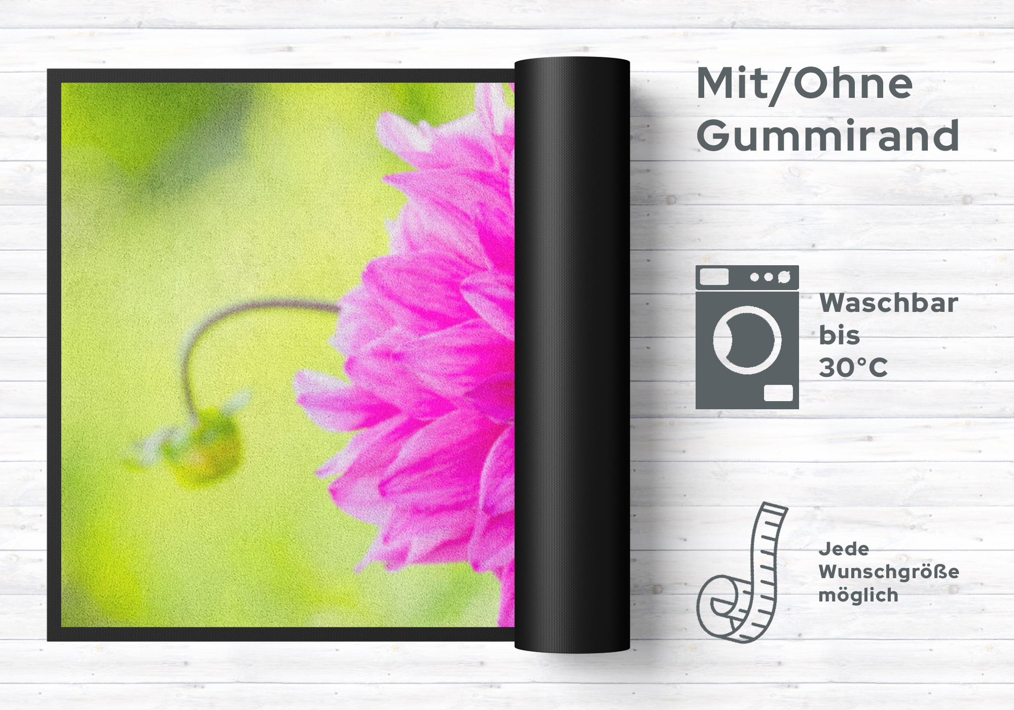Mit dieser Fussmatte Dahlie 5079 zaubern Sie nicht nur Ihren Besuchern ein Lächeln ins Gesicht. Diese sehr hochwertige Türmatte ist reissfest, knitterfrei, waschbar. Da sie mit 7-8 mm Gesamthöhe sehr flach ist, passt sie unter fast jede Tür. Die Fussmatte ist Schadstoffgeprüft und für Allergiker geeignet. Sie erhalten 5 Jahre Herstellergarantie.