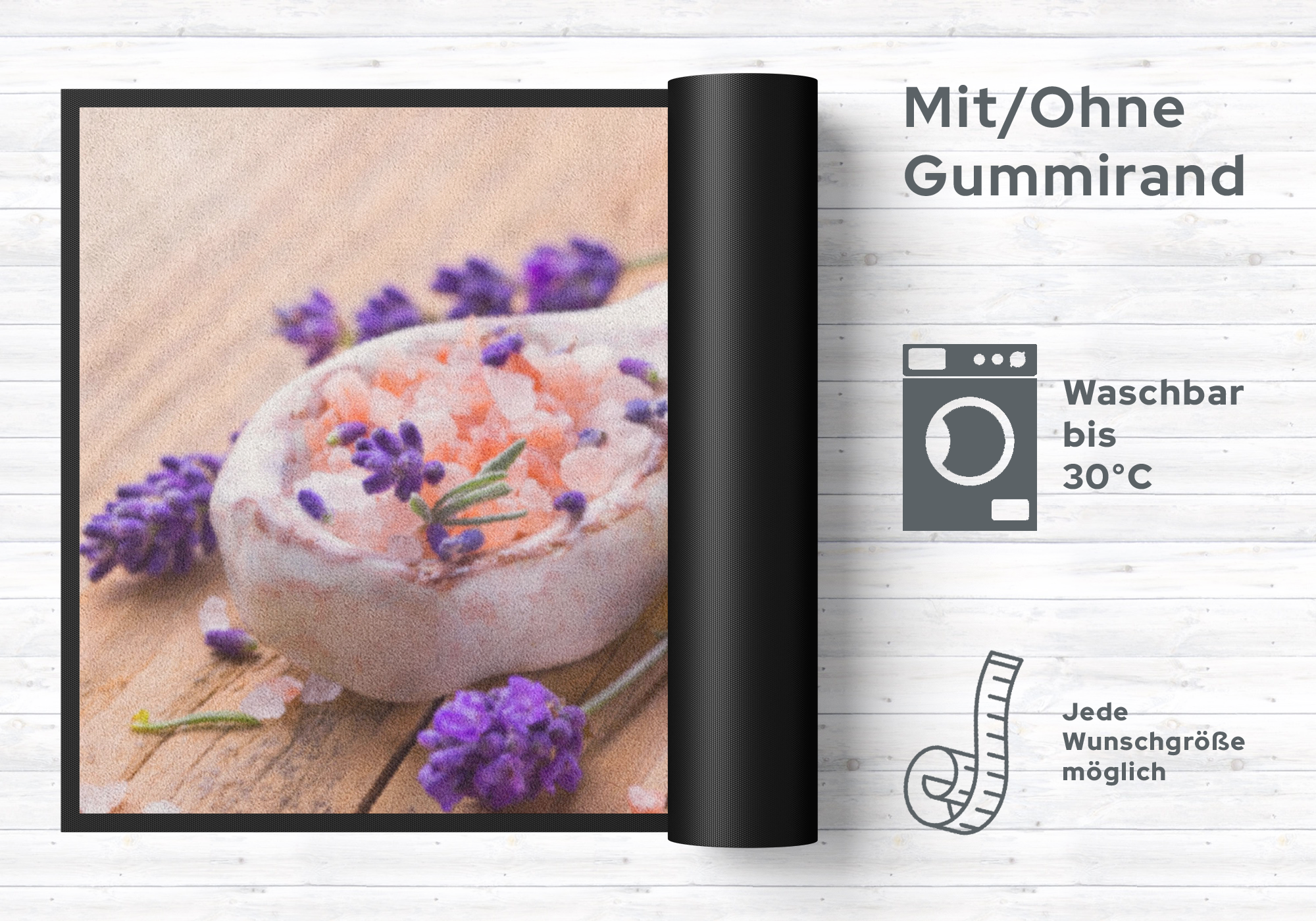 Mit dieser Fussmatte Wellness 5072 zaubern Sie nicht nur Ihren Besuchern ein Lächeln ins Gesicht. Diese sehr hochwertige Türmatte ist reissfest, knitterfrei, waschbar. Da sie mit 7 mm Gesamthöhe sehr flach ist, passt sie unter fast jede Tür. Die Fussmatte ist Schadstoffgeprüft und für Allergiker geeignet. Sie erhalten 5 Jahre Herstellergarantie.