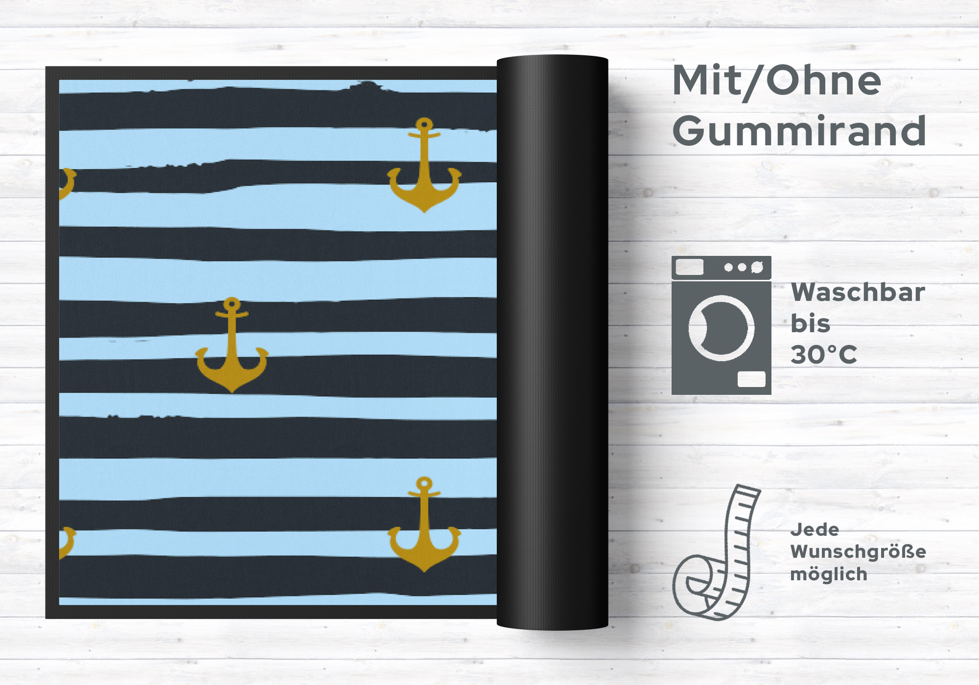 Mit dieser Fussmatte Anker 4696 zaubern Sie nicht nur Ihren Besuchern ein Lächeln ins Gesicht. Diese sehr hochwertige Türmatte ist reissfest, knitterfrei, waschbar. Da sie mit 7 mm Gesamthöhe sehr flach ist, passt sie unter fast jede Tür. Die Fussmatte ist Schadstoffgeprüft und für Allergiker geeignet. Sie erhalten 5 Jahre Herstellergarantie.