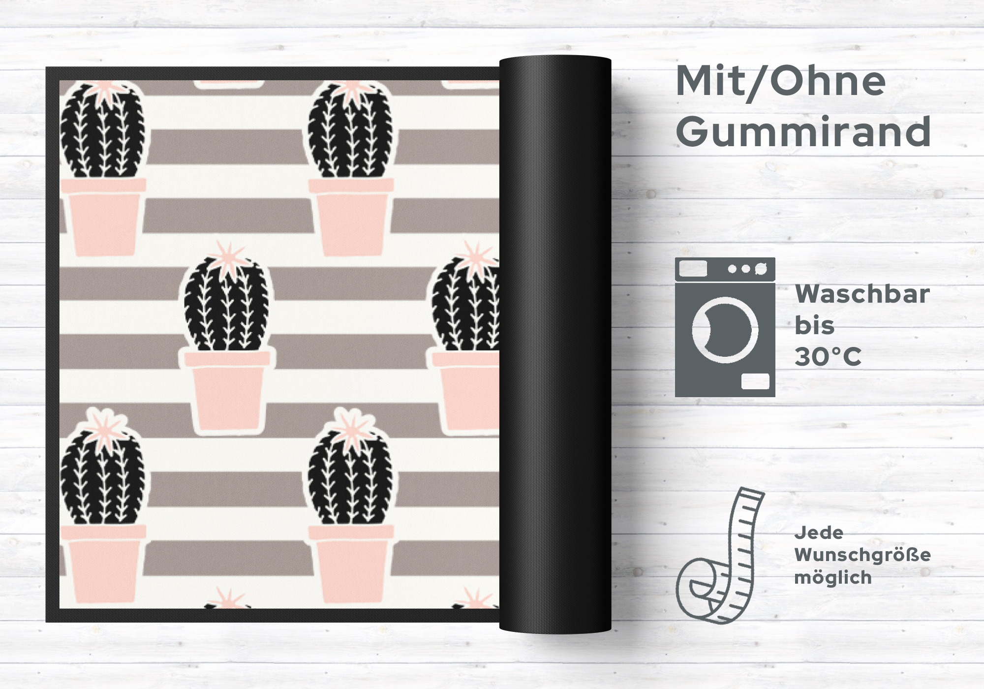 Mit dieser Fussmatte Kaktus 4705 zaubern Sie nicht nur Ihren Besuchern ein Lächeln ins Gesicht. Diese sehr hochwertige Türmatte ist reissfest, knitterfrei, waschbar. Da sie mit 7 mm Gesamthöhe sehr flach ist, passt sie unter fast jede Tür. Die Fussmatte ist Schadstoffgeprüft und für Allergiker geeignet. Sie erhalten 5 Jahre Herstellergarantie.