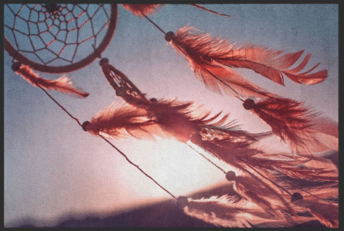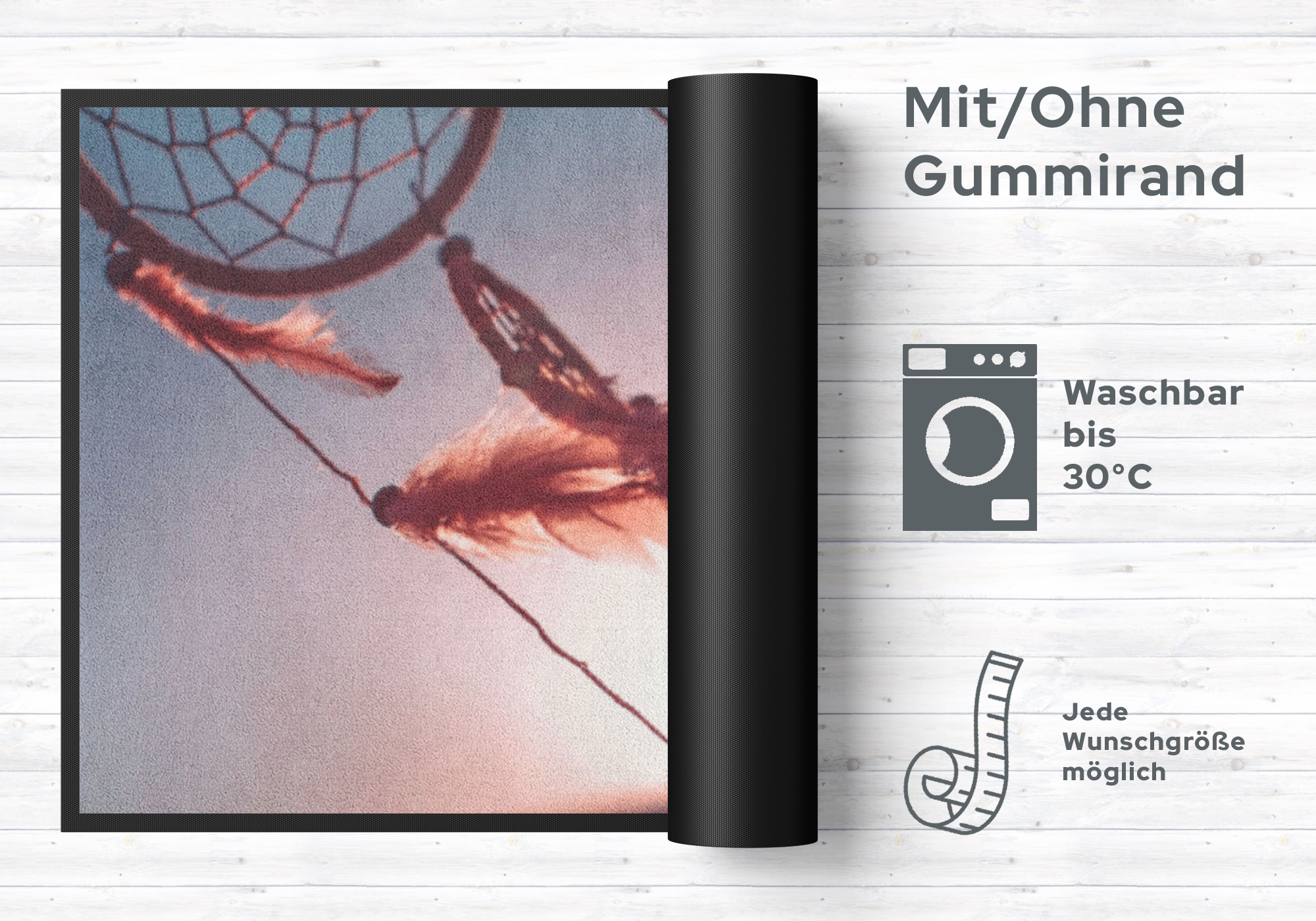 Mit dieser Fussmatte Traumfänger 6365 zaubern Sie nicht nur Ihren Besuchern ein Lächeln ins Gesicht. Diese sehr hochwertige Fussmatte ist reissfest, knitterfrei, waschbar. Da sie mit 7-8 mm Gesamthöhe sehr flach ist, passt sie unter fast jede Tür. Die Fussmatte ist Schadstoffgeprüft und für Allergiker geeignet. Sie erhalten 5 Jahre Herstellergarantie.
