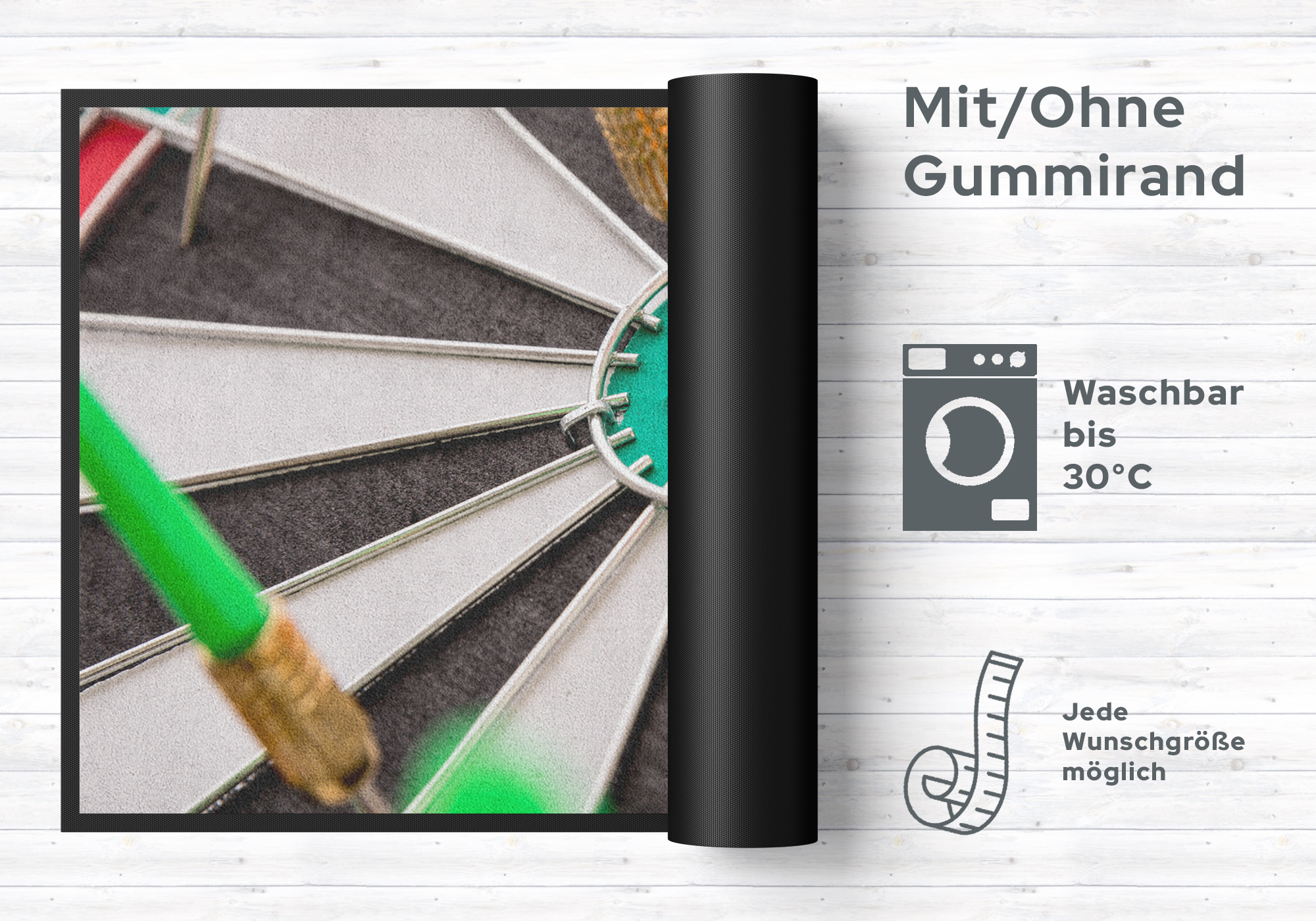 Mit dieser Fußmatte Welcome Darts 10111 zaubern Sie nicht nur Ihren Besuchern ein Lächeln ins Gesicht. Diese sehr hochwertige Türmatte ist reissfest, knitterfrei, waschbar. Da sie mit 7 mm Gesamthöhe sehr flach ist, passt sie unter fast jede Tür. Die Fußmatte ist Schadstoffgeprüft und für Allergiker geeignet. Sie erhalten 5 Jahre Herstellergarantie.