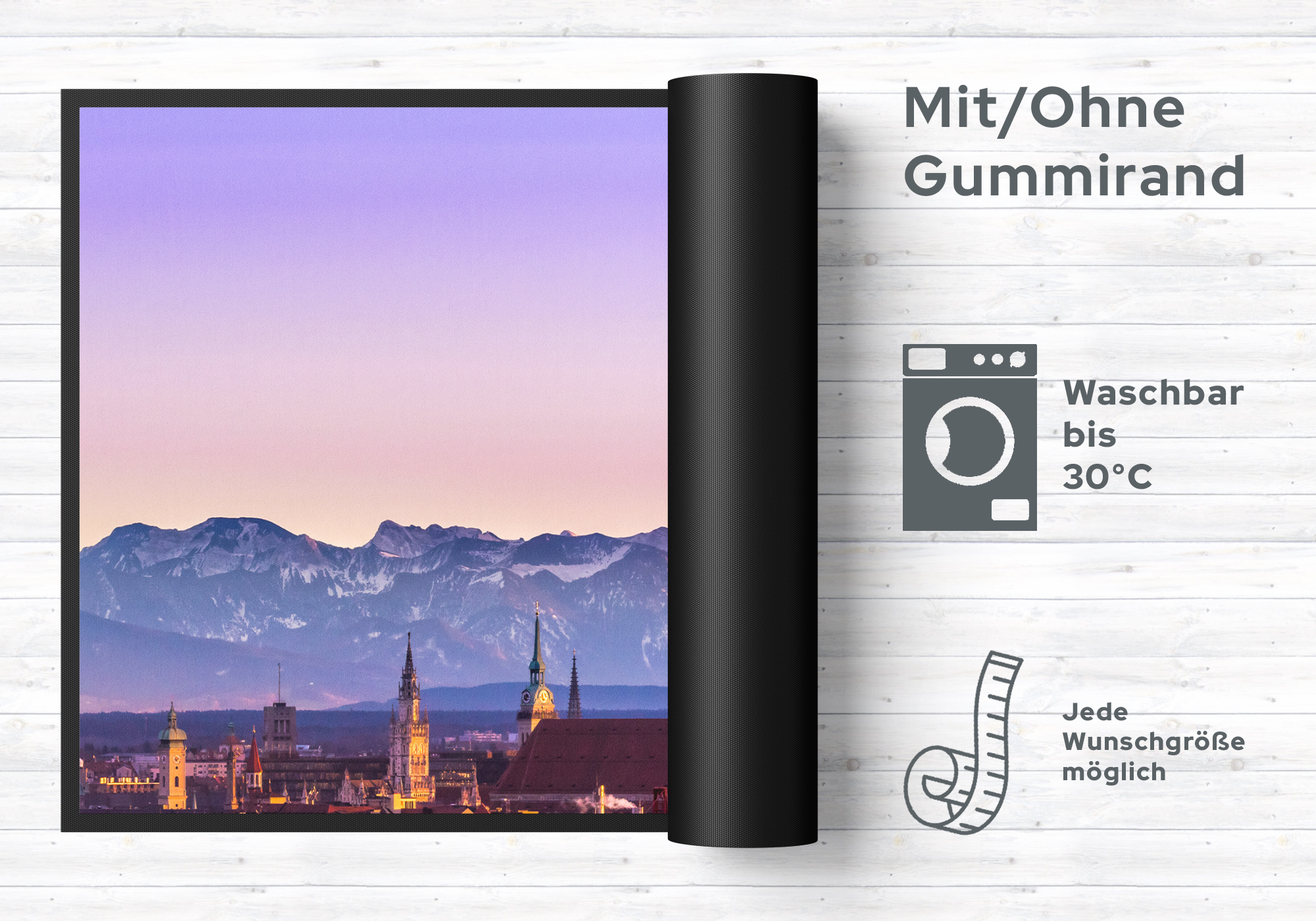 Mit dieser Fußmatte München 10382 zaubern Sie nicht nur Ihren Besuchern ein Lächeln ins Gesicht. Diese sehr hochwertige Türmatte ist reissfest, knitterfrei, waschbar. Da sie mit 7 mm Gesamthöhe sehr flach ist, passt sie unter fast jede Tür. Die Fußmatte ist Schadstoffgeprüft und für Allergiker geeignet. Sie erhalten 5 Jahre Herstellergarantie.