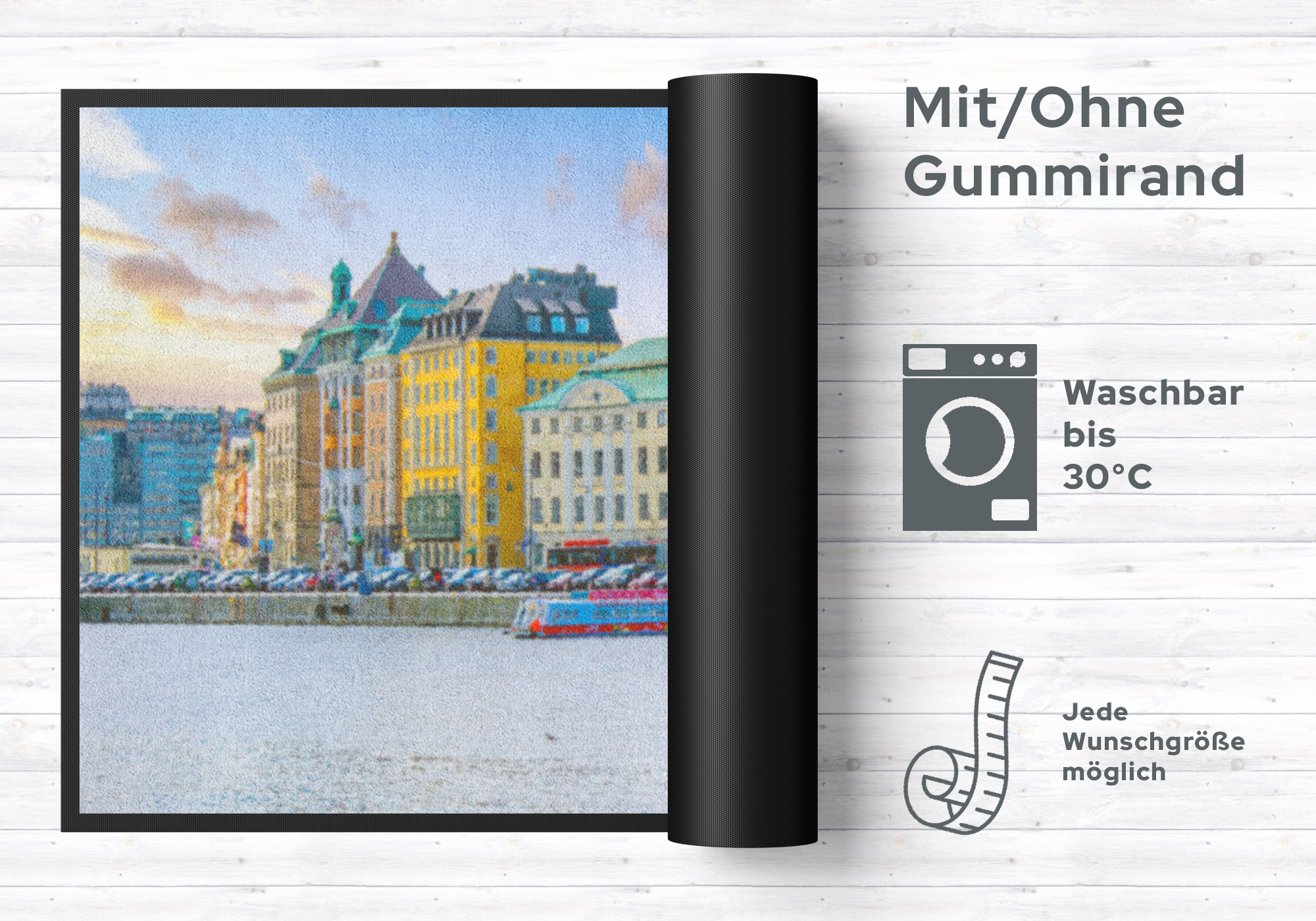 Mit dieser Fußmatte Schweden 4482 zaubern Sie nicht nur Ihren Besuchern ein Lächeln ins Gesicht. Diese sehr hochwertige Türmatte ist reissfest, knitterfrei, waschbar. Da sie mit 7 mm Gesamthöhe sehr flach ist, passt sie unter fast jede Tür. Die Fußmatte ist Schadstoffgeprüft und für Allergiker geeignet. Sie erhalten 5 Jahre Herstellergarantie.