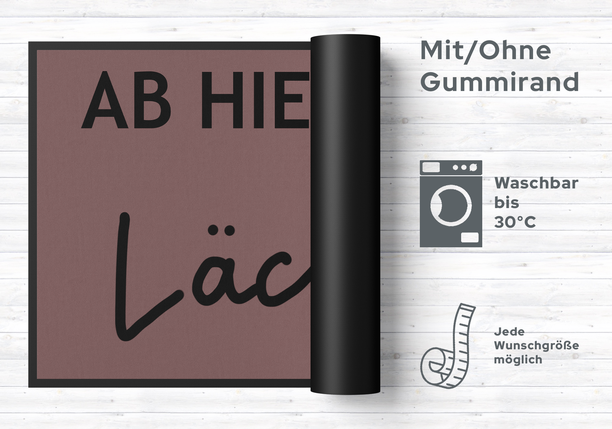 Pflegetipps: Waschen Sie die Fußmatte 10592 separat bei 40° Temperatur mit Feinwaschmittel, schleudern diese auf niedriger Stufe, dadurch richten sich die Fasern auf, der Mattenflor wird aktiviert und transportbedingte Falten und Knicke werden wieder glatt. Pflegen Sie so Ihre Fußmatte regelmäßig und Sie werden überrascht sein, wie viele Jahre Qualität und Farbe erhalten bleiben. Rückgaberecht ausgeschlossen, da es sich um eine individuelle Fussmatte handelt.