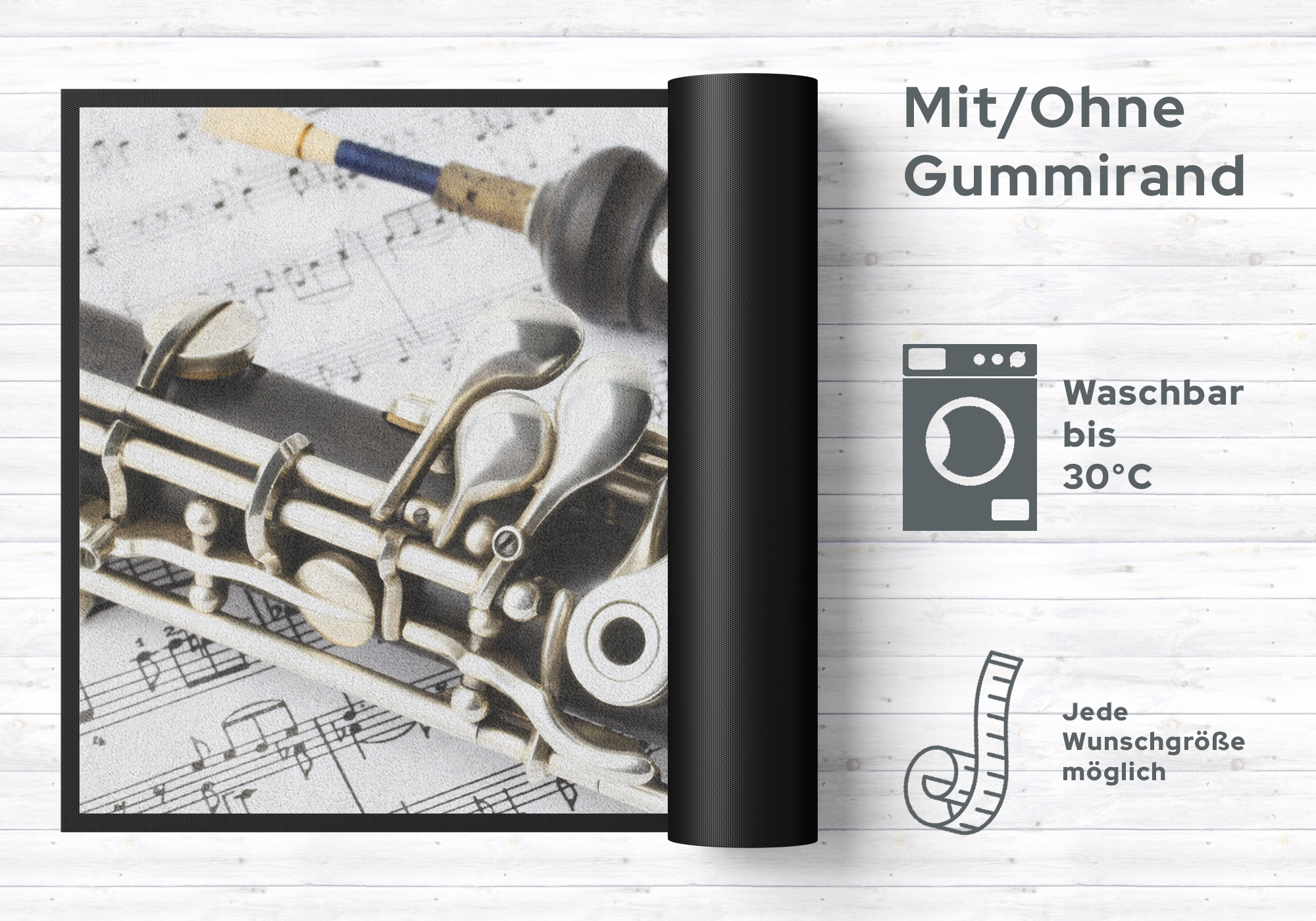 Mit dieser Fussmatte Klarinette 10030 zaubern Sie nicht nur Ihren Besuchern ein Lächeln ins Gesicht. Diese sehr hochwertige Fussmatte ist reissfest, knitterfrei, waschbar. Da sie mit 7-8 mm Gesamthöhe sehr flach ist, passt sie unter fast jede Tür. Die Fussmatte ist Schadstoffgeprüft und für Allergiker geeignet. Sie erhalten 5 Jahre Herstellergarantie.