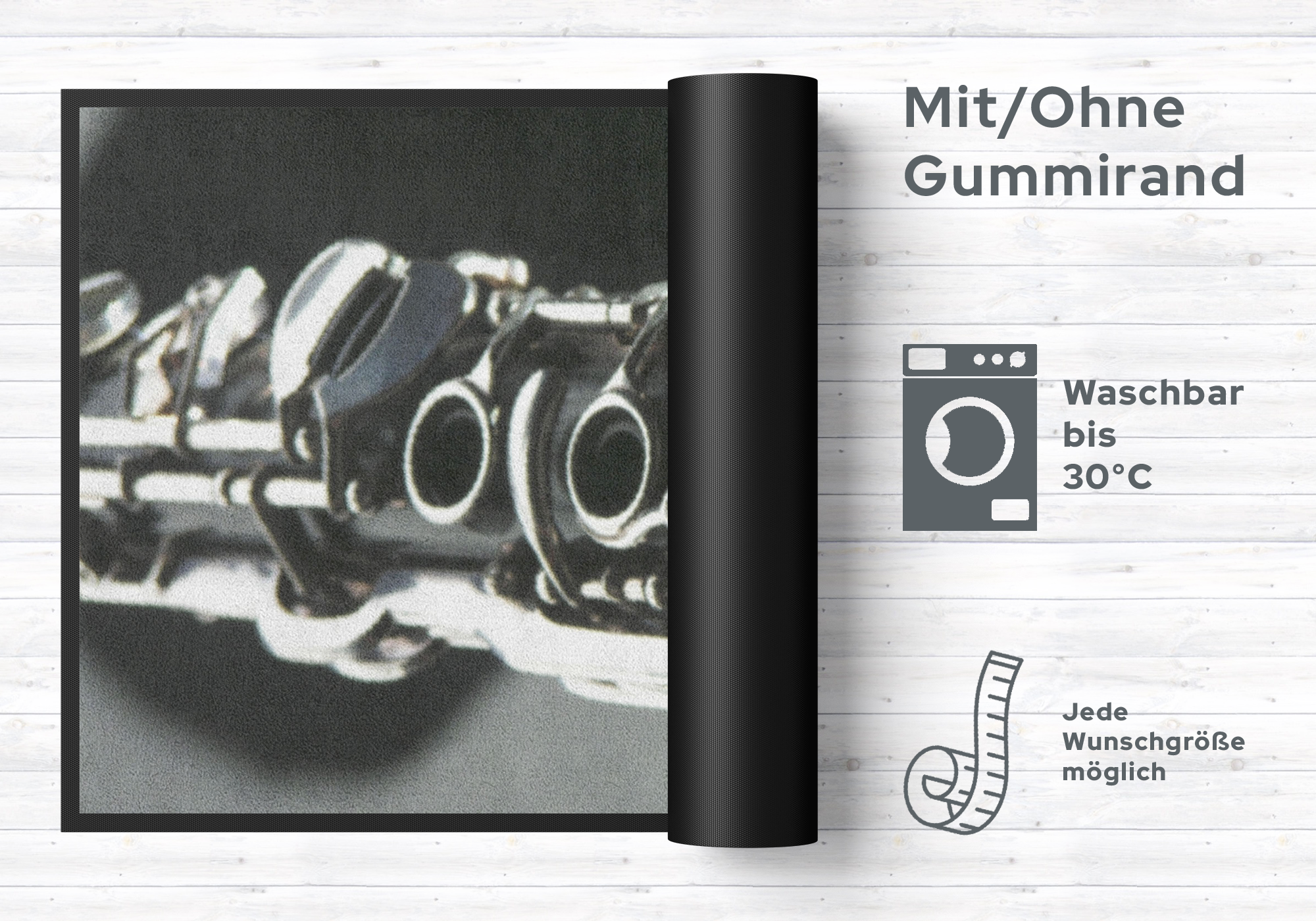 Mit dieser Fussmatte Klarinette 6262 zaubern Sie nicht nur Ihren Besuchern ein Lächeln ins Gesicht. Diese sehr hochwertige Fussmatte ist reissfest, knitterfrei, waschbar. Da sie mit 7-8 mm Gesamthöhe sehr flach ist, passt sie unter fast jede Tür. Die Fussmatte ist Schadstoffgeprüft und für Allergiker geeignet. Sie erhalten 5 Jahre Herstellergarantie.