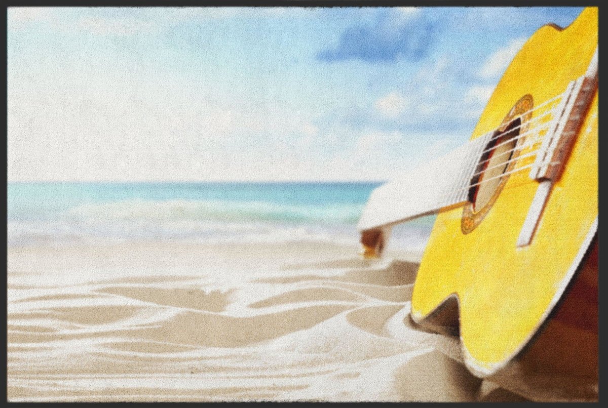 Mit dieser Fussmatte Gitarre 6331 zaubern Sie nicht nur Ihren Besuchern ein Lächeln ins Gesicht. Diese sehr hochwertige Fussmatte ist reissfest, knitterfrei, waschbar. Da sie mit 7-8 mm Gesamthöhe sehr flach ist, passt sie unter fast jede Tür. Die Fussmatte ist Schadstoffgeprüft und für Allergiker geeignet. Sie erhalten 5 Jahre Herstellergarantie.
