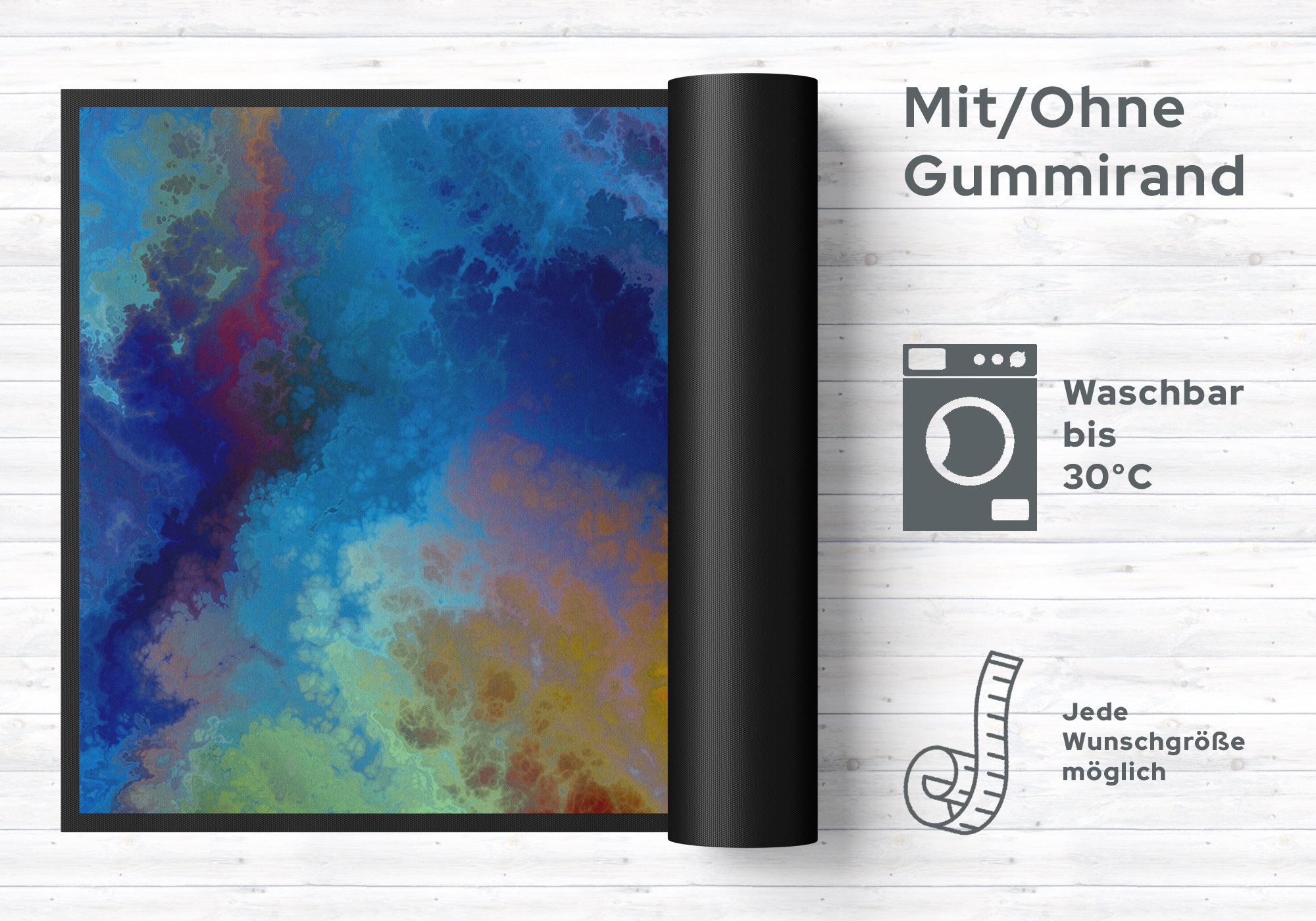 Pflegetipps: Waschen Sie die Fußmatte 10544 separat bei 40° Temperatur mit Feinwaschmittel, schleudern diese auf niedriger Stufe, dadurch richten sich die Fasern auf, der Mattenflor wird aktiviert und transportbedingte Falten und Knicke werden wieder glatt. Pflegen Sie so Ihre Fußmatte regelmäßig und Sie werden überrascht sein, wie viele Jahre Qualität und Farbe erhalten bleiben. Rückgaberecht ausgeschlossen, da es sich um eine individuelle Fussmatte handelt.