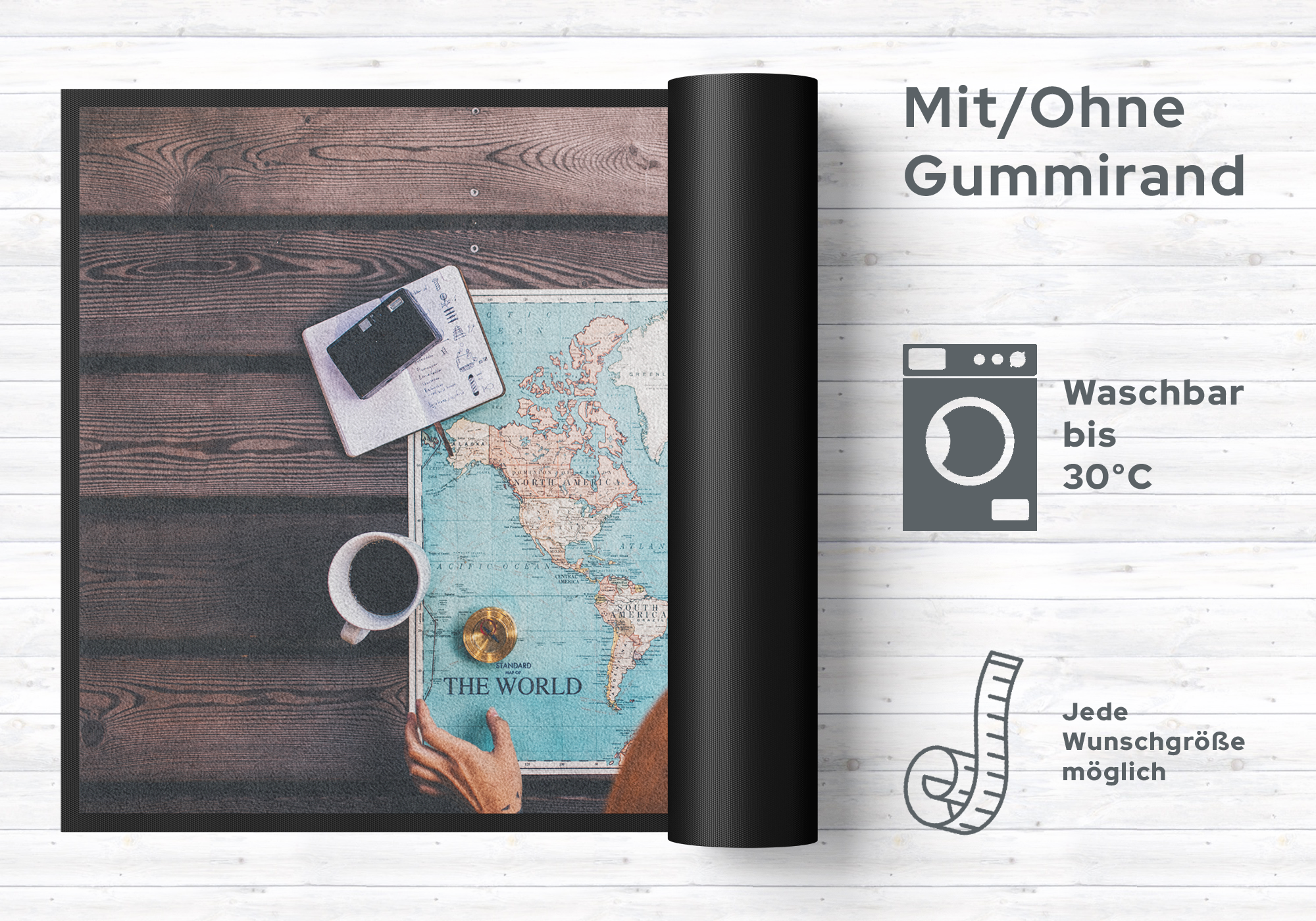 Mit dieser Fussmatte 10223 zaubern Sie nicht nur Ihren Besuchern ein Lächeln ins Gesicht. Diese sehr hochwertige Türmatte ist reissfest, knitterfrei, waschbar. Da sie mit 7 mm Gesamthöhe sehr flach ist, passt sie unter fast jede Tür. Die Fussmatte ist Schadstoffgeprüft und für Allergiker geeignet. Sie erhalten 5 Jahre Herstellergarantie.