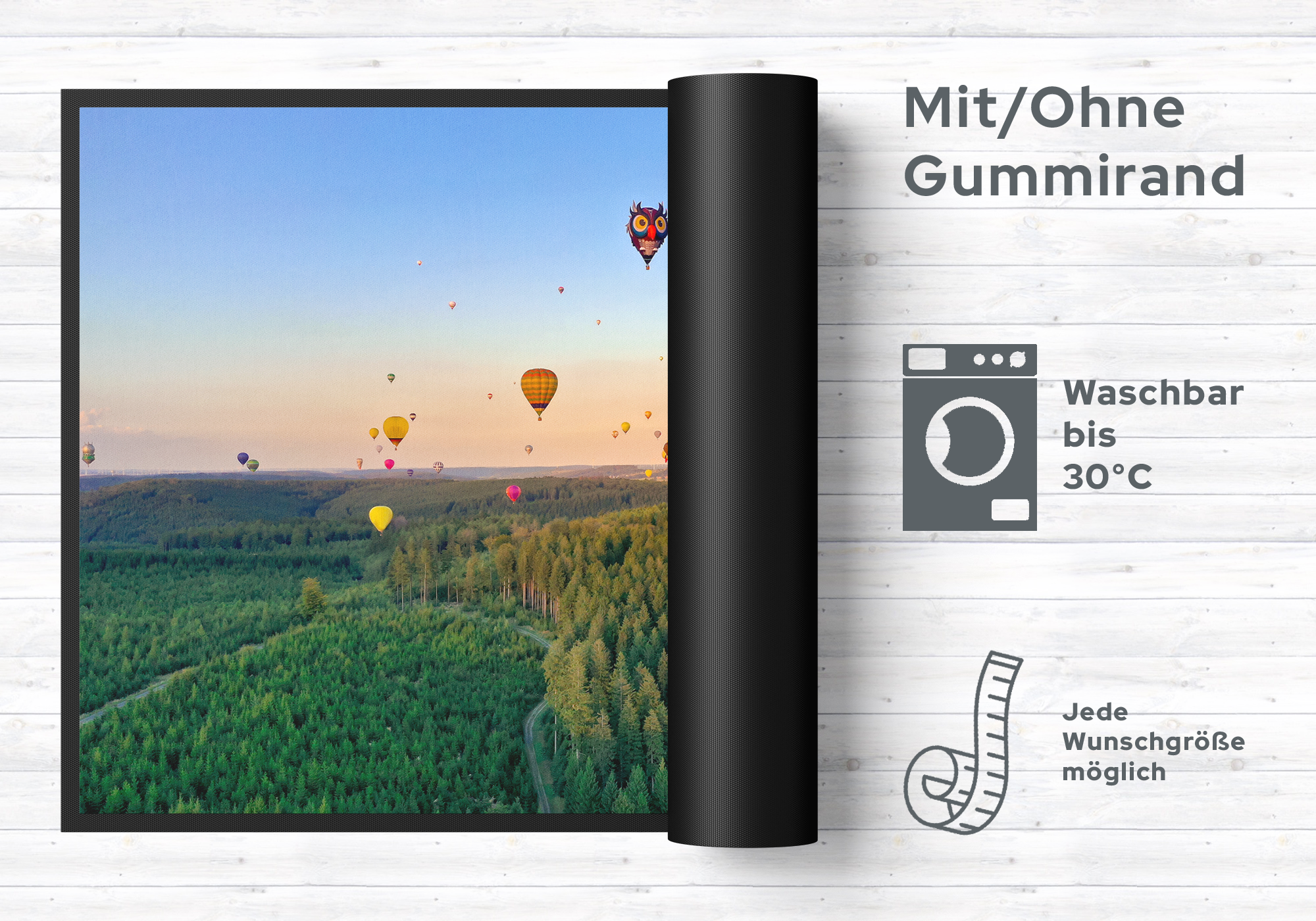 Mit dieser Fußmatte Heißluftballon 10400 zaubern Sie nicht nur Ihren Besuchern ein Lächeln ins Gesicht. Diese sehr hochwertige Türmatte ist reissfest, knitterfrei, waschbar. Da sie mit 7 mm Gesamthöhe sehr flach ist, passt sie unter fast jede Tür. Die Fußmatte ist Schadstoffgeprüft und für Allergiker geeignet. Sie erhalten 5 Jahre Herstellergarantie.