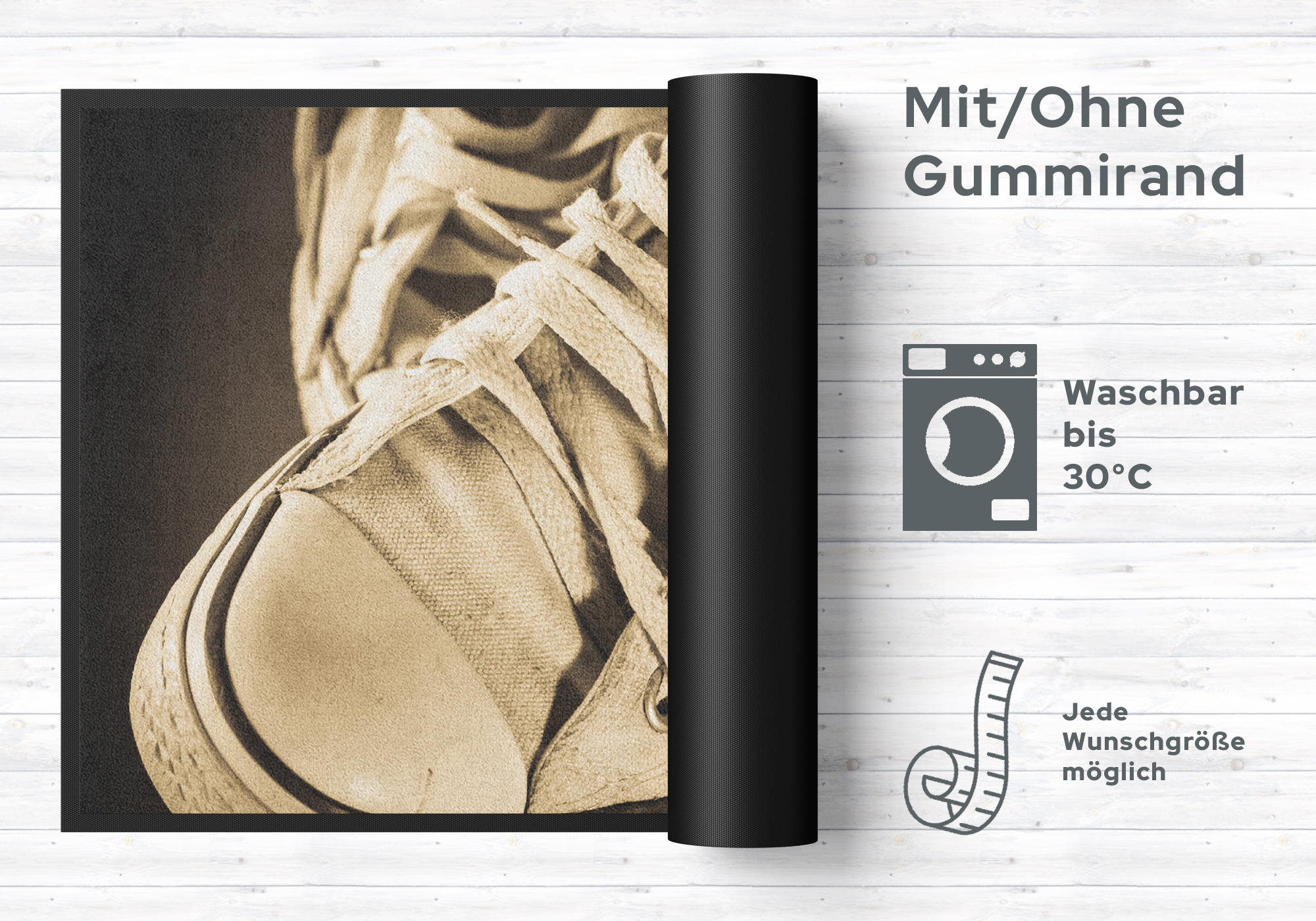 Mit dieser Fußmatte 10045 zaubern Sie nicht nur Ihren Besuchern ein Lächeln ins Gesicht. Diese sehr hochwertige Türmatte ist reissfest, knitterfrei, waschbar. Da sie mit 7 mm Gesamthöhe sehr flach ist, passt sie unter fast jede Tür. Die Fußmatte ist Schadstoffgeprüft und für Allergiker geeignet. Sie erhalten 5 Jahre Herstellergarantie.