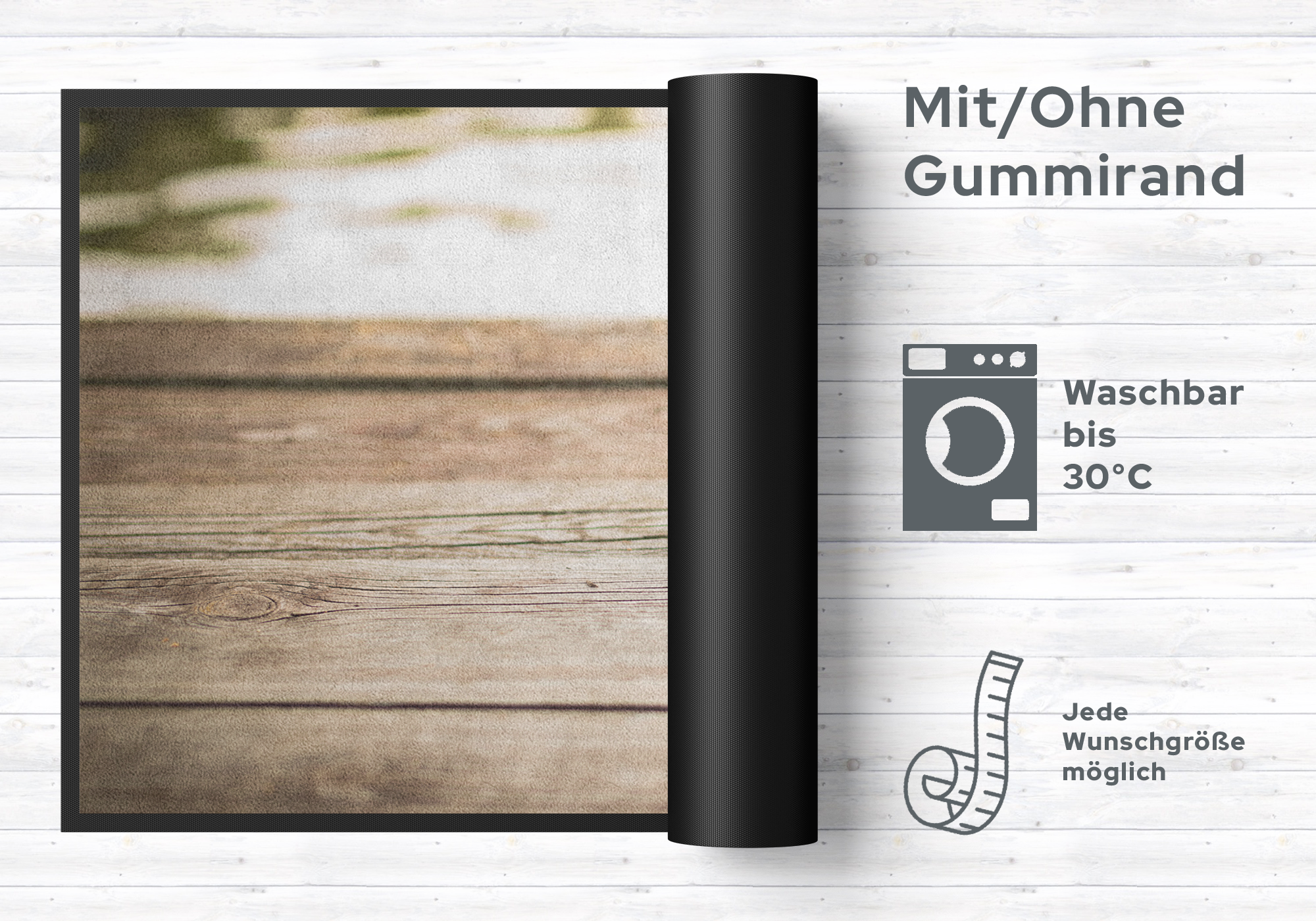 Mit dieser Fußmatte 10101 zaubern Sie nicht nur Ihren Besuchern ein Lächeln ins Gesicht. Diese sehr hochwertige Türmatte ist reissfest, knitterfrei, waschbar. Da sie mit 7 mm Gesamthöhe sehr flach ist, passt sie unter fast jede Tür. Die Fußmatte ist Schadstoffgeprüft und für Allergiker geeignet. Sie erhalten 5 Jahre Herstellergarantie.