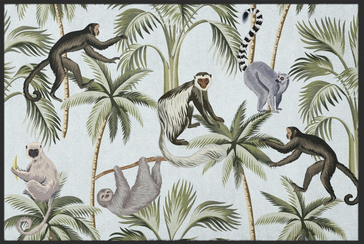 Mit dieser Fussmatte Affen 10238 zaubern Sie nicht nur Ihren Besuchern ein Lächeln ins Gesicht. Diese sehr hochwertige Türmatte ist reissfest, knitterfrei, waschbar. Da sie mit 7 mm Gesamthöhe sehr flach ist, passt sie unter fast jede Tür. Die Fußmatte ist Schadstoffgeprüft und für Allergiker geeignet. Sie erhalten 5 Jahre Herstellergarantie.