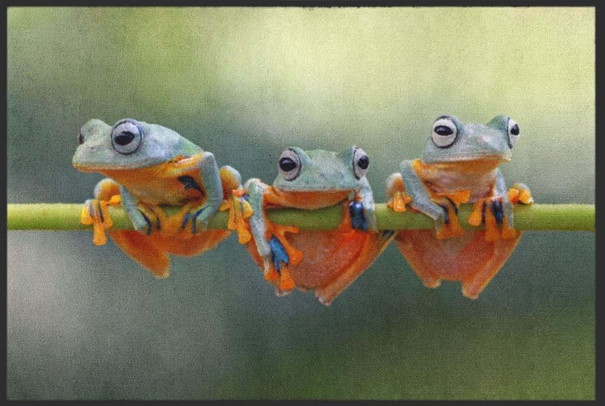Mit dieser Fußmatte Frösche 4539 zaubern Sie nicht nur Ihren Besuchern ein Lächeln ins Gesicht. Diese sehr hochwertige Türmatte ist reissfest, knitterfrei, waschbar. Da sie mit 7 mm Gesamthöhe sehr flach ist, passt sie unter fast jede Tür. Die Fußmatte ist Schadstoffgeprüft und für Allergiker geeignet. Sie erhalten 5 Jahre Herstellergarantie.