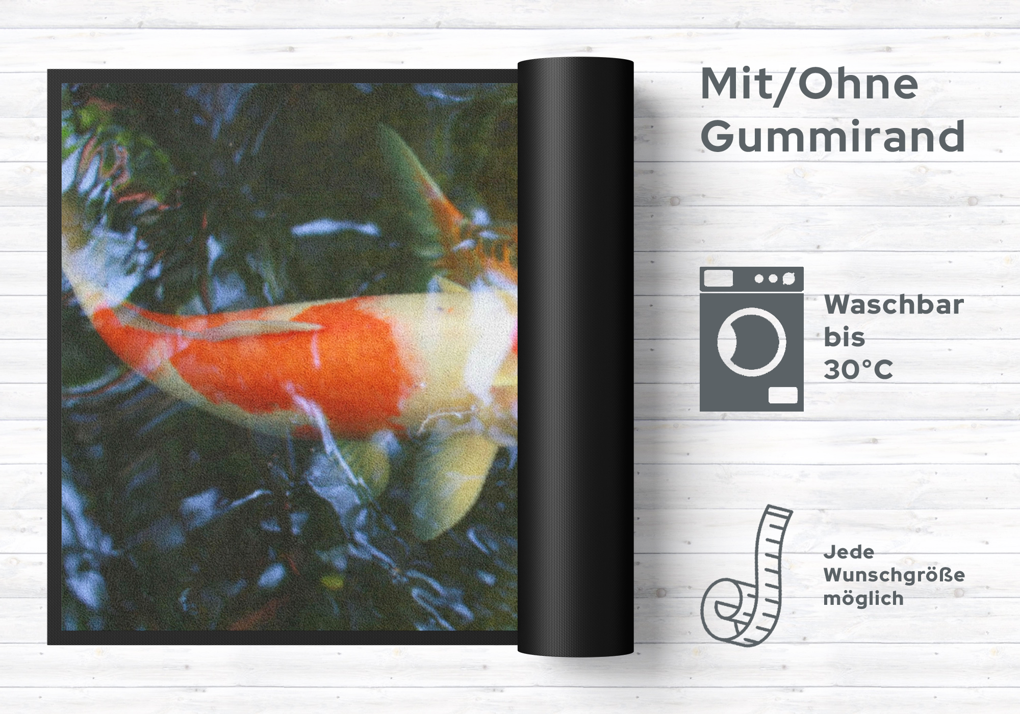 Mit dieser Fussmatte Koi 6098 zaubern Sie nicht nur Ihren Besuchern ein Lächeln ins Gesicht. Diese sehr hochwertige Fussmatte ist reissfest, knitterfrei, waschbar. Da sie mit 7-8 mm Gesamthöhe sehr flach ist, passt sie unter fast jede Tür. Die Fussmatte ist Schadstoffgeprüft und für Allergiker geeignet. Sie erhalten 5 Jahre Herstellergarantie.