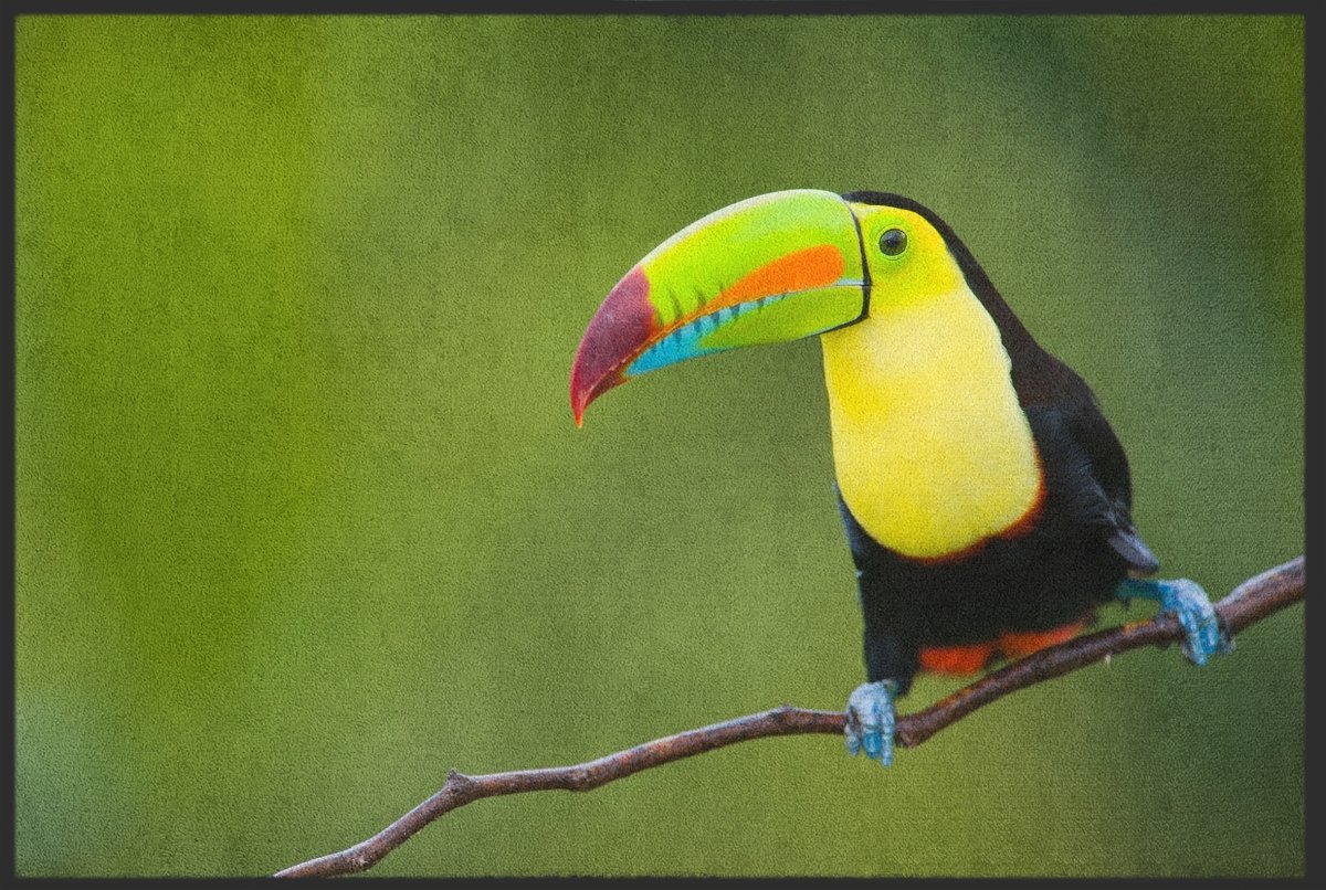 Mit dieser Fußmatte Tukan 10424 zaubern Sie nicht nur Ihren Besuchern ein Lächeln ins Gesicht. Diese sehr hochwertige Türmatte ist reissfest, knitterfrei, waschbar. Da sie mit 7 mm Gesamthöhe sehr flach ist, passt sie unter fast jede Tür. Die Fußmatte ist Schadstoffgeprüft und für Allergiker geeignet. Sie erhalten 5 Jahre Herstellergarantie.