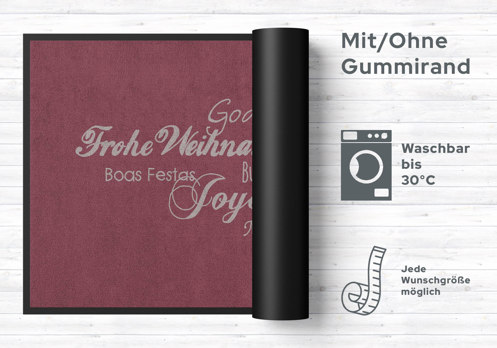 Mit dieser Fussmatte 10350 zaubern Sie nicht nur Ihren Besuchern ein Lächeln ins Gesicht. Diese sehr hochwertige Türmatte ist reissfest, knitterfrei, waschbar. Da sie mit 7 mm Gesamthöhe sehr flach ist, passt sie unter fast jede Tür. Die Fussmatte ist Schadstoffgeprüft und für Allergiker geeignet. Sie erhalten 5 Jahre Herstellergarantie.