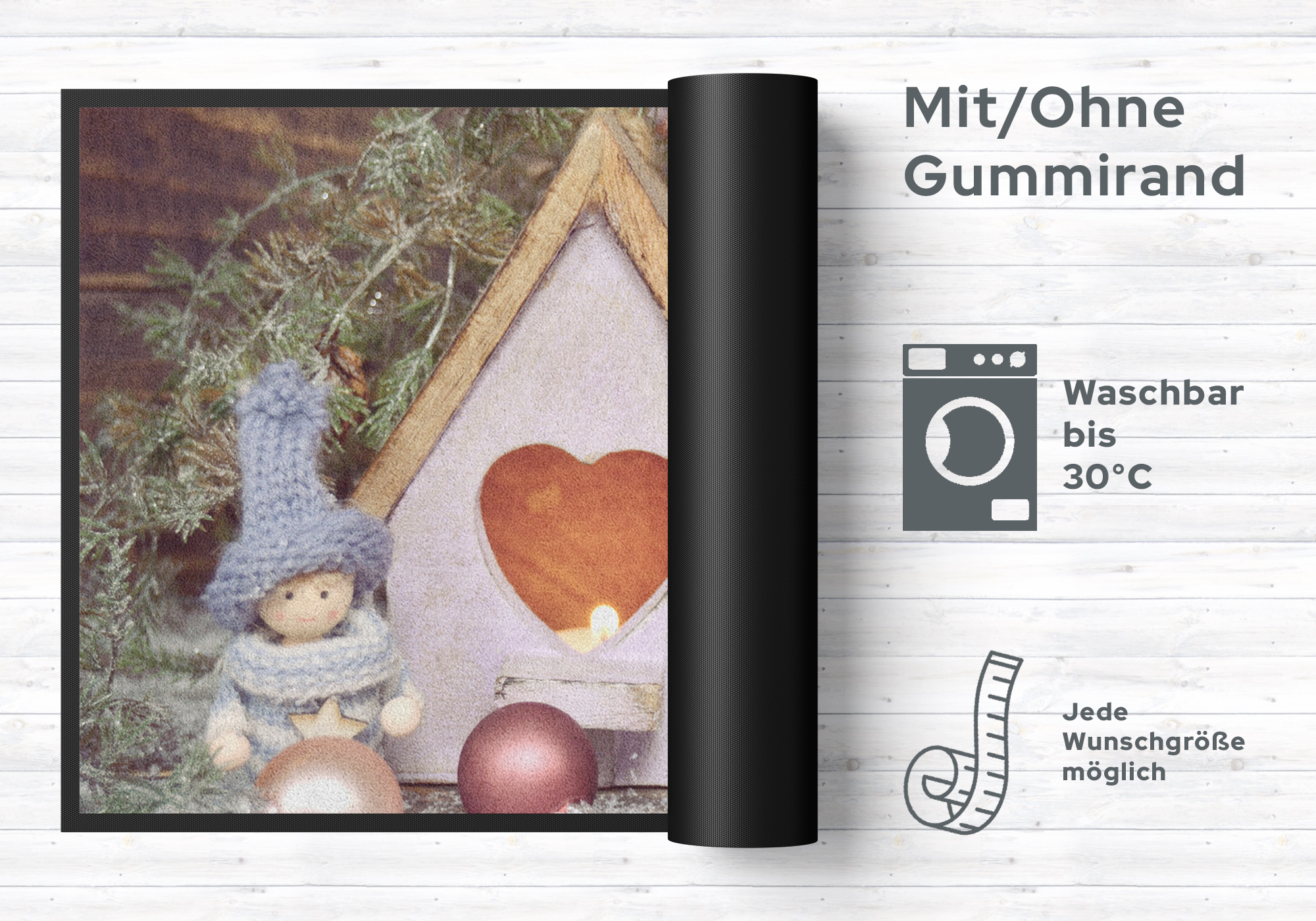 Mit dieser Fussmatte Weihnachten 10110 zaubern Sie nicht nur Ihren Besuchern ein Lächeln ins Gesicht. Diese sehr hochwertige Türmatte ist reissfest, knitterfrei, waschbar. Da sie mit 7 mm Gesamthöhe sehr flach ist, passt sie unter fast jede Tür. Die Fussmatte ist Schadstoffgeprüft und für Allergiker geeignet. Sie erhalten 5 Jahre Herstellergarantie.