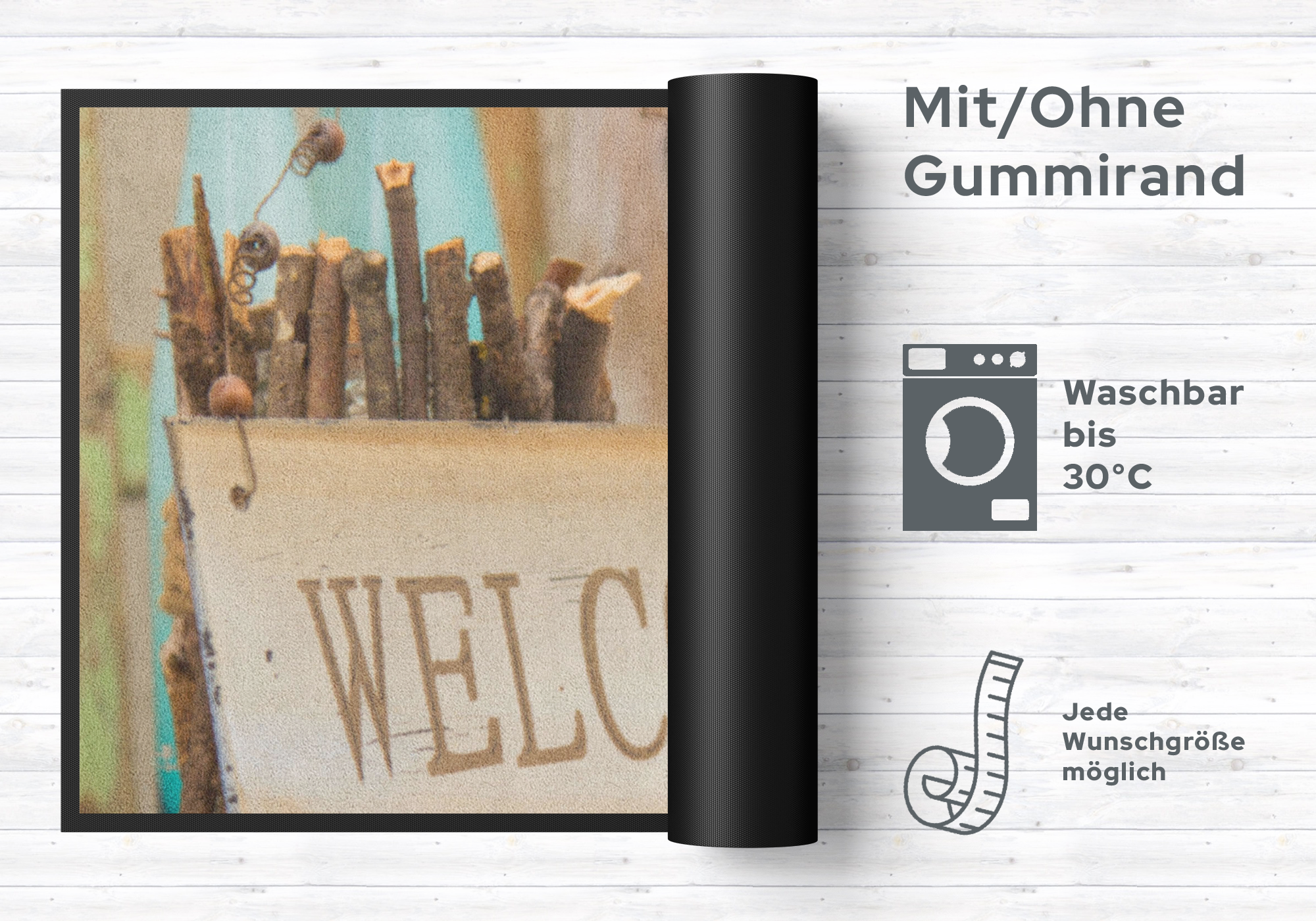 Auf Wunschmaß - auch mit Logo oder Namen.