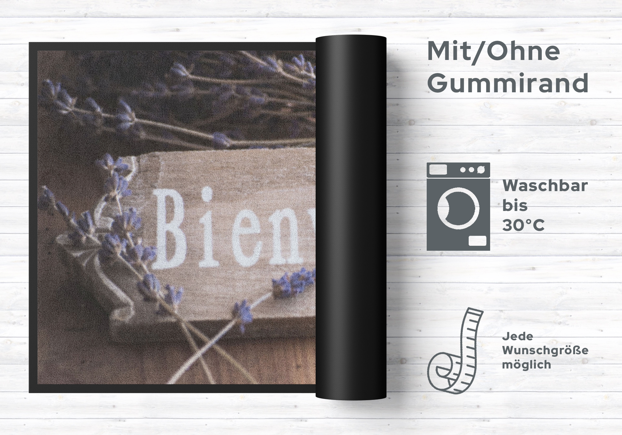 Mit dieser Fussmatte Bienvenue 4757 zaubern Sie nicht nur Ihren Besuchern ein Lächeln ins Gesicht. Diese sehr hochwertige Türmatte ist reissfest, knitterfrei, waschbar. Da sie mit 7 mm Gesamthöhe sehr flach ist, passt sie unter fast jede Tür. Die Fussmatte ist Schadstoffgeprüft und für Allergiker geeignet. Sie erhalten 5 Jahre Herstellergarantie.