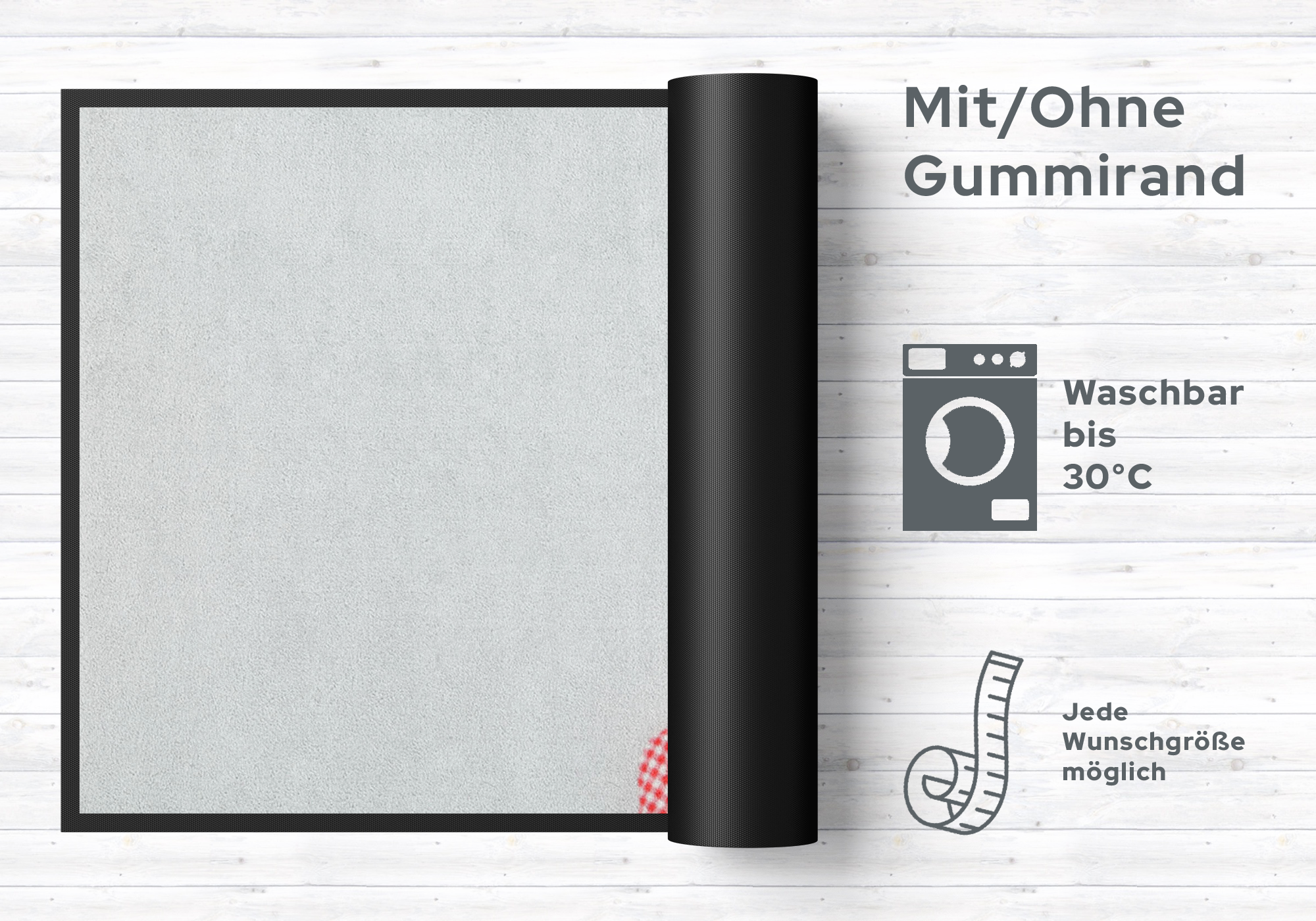 Mit dieser Fussmatte 4793 zaubern Sie nicht nur Ihren Besuchern ein Lächeln ins Gesicht. Diese sehr hochwertige Türmatte ist reissfest, knitterfrei, waschbar. Da sie mit 7 mm Gesamthöhe sehr flach ist, passt sie unter fast jede Tür. Die Fussmatte ist Schadstoffgeprüft und für Allergiker geeignet. Sie erhalten 5 Jahre Herstellergarantie.