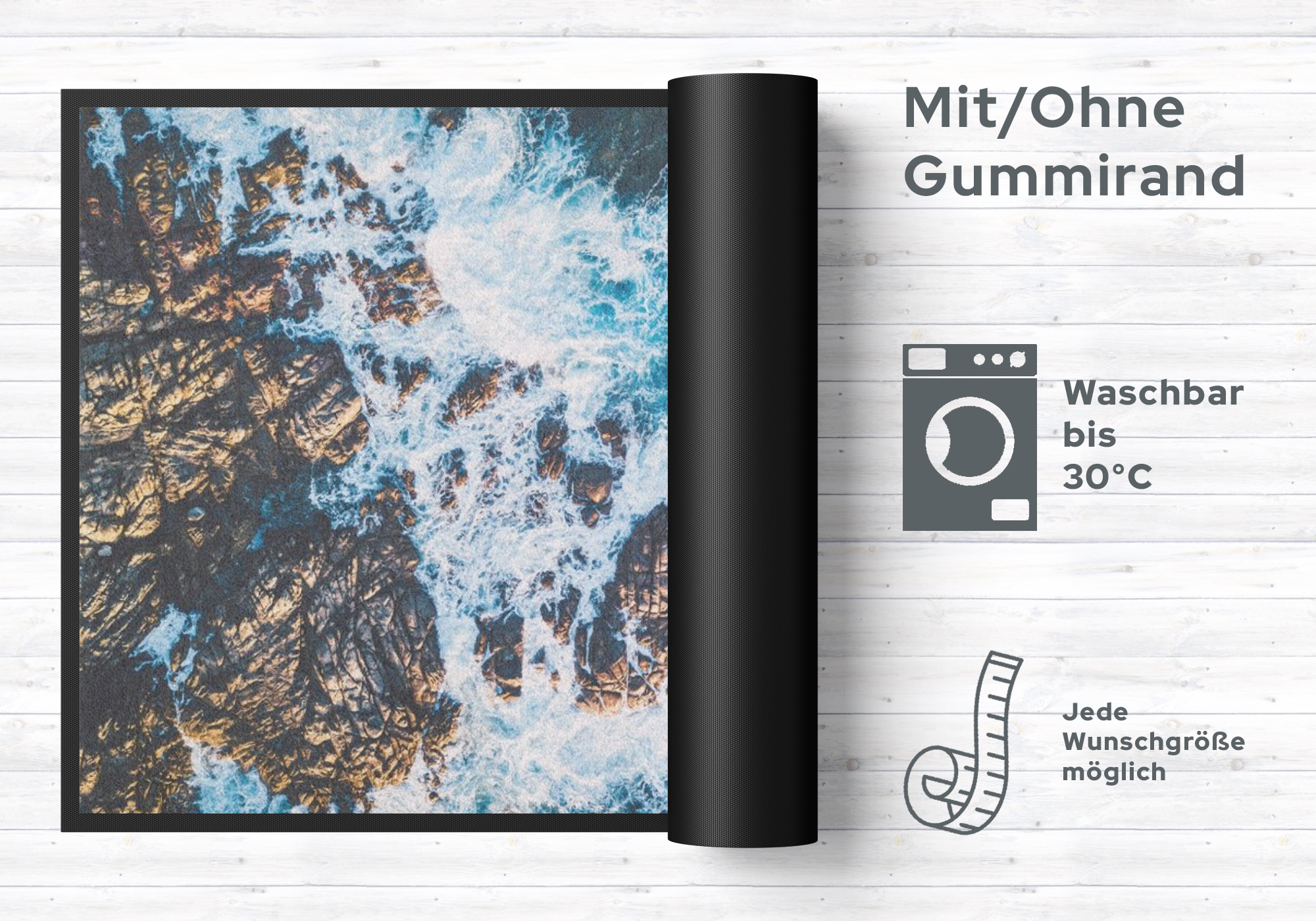 Mit dieser Fussmatte 11277 zaubern Sie nicht nur Ihren Besuchern ein Lächeln ins Gesicht. Diese sehr hochwertige Türmatte ist reissfest, knitterfrei, waschbar. Da sie mit 7 mm Gesamthöhe sehr flach ist, passt sie unter fast jede Tür. Die Fussmatte ist Schadstoffgeprüft und für Allergiker geeignet. Sie erhalten 5 Jahre Herstellergarantie.