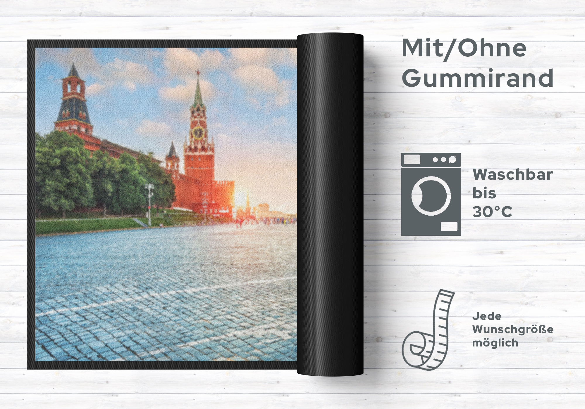 Mit dieser Fußmatte Russland 4502 zaubern Sie nicht nur Ihren Besuchern ein Lächeln ins Gesicht. Diese sehr hochwertige Türmatte ist reissfest, knitterfrei, waschbar. Da sie mit 7 mm Gesamthöhe sehr flach ist, passt sie unter fast jede Tür. Die Fußmatte ist Schadstoffgeprüft und für Allergiker geeignet. Sie erhalten 5 Jahre Herstellergarantie.