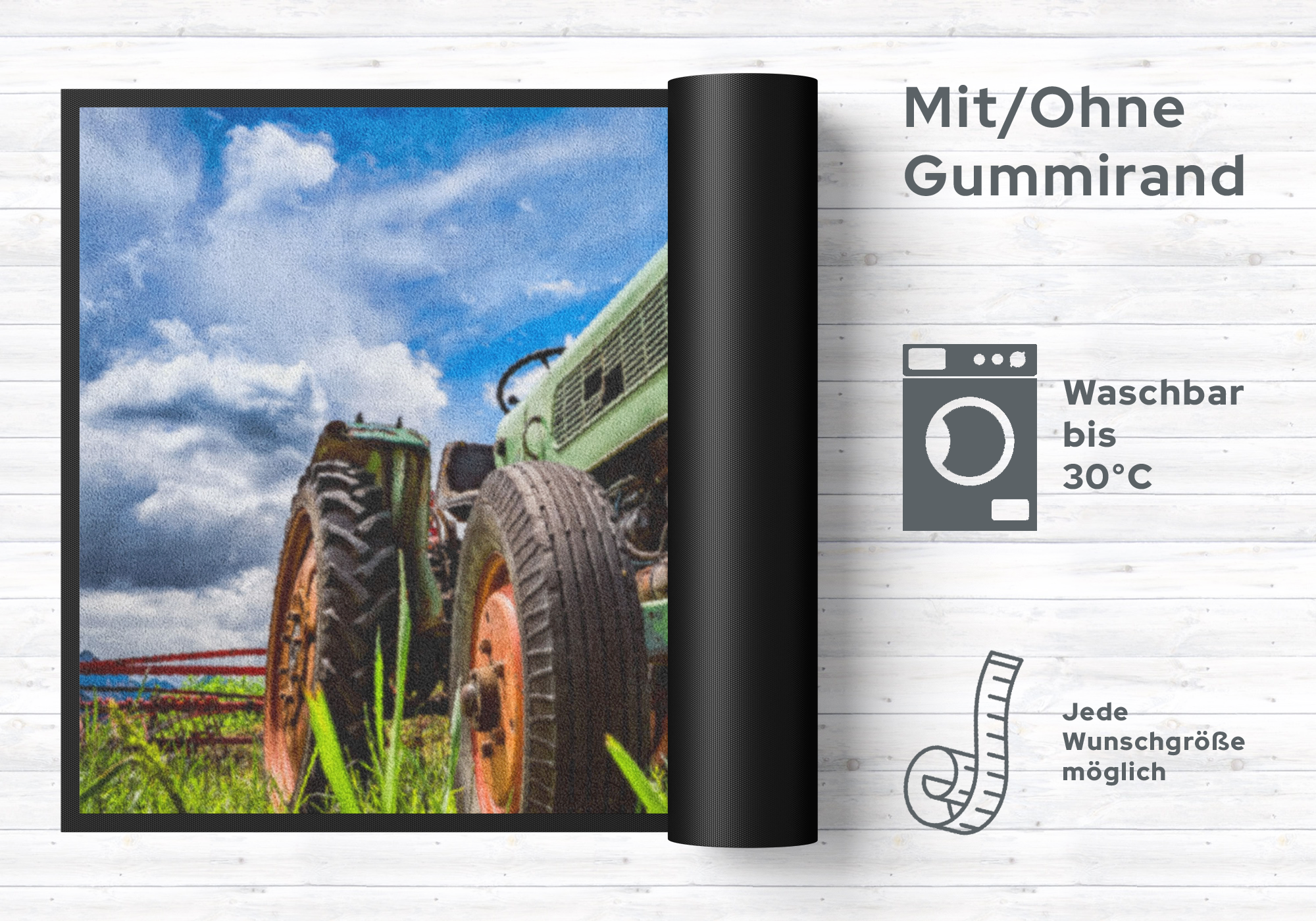 Mit dieser Fussmatte Traktor 6334 zaubern Sie nicht nur Ihren Besuchern ein Lächeln ins Gesicht. Diese sehr hochwertige Fussmatte ist reissfest, knitterfrei, waschbar. Da sie mit 7-8 mm Gesamthöhe sehr flach ist, passt sie unter fast jede Tür. Die Fussmatte ist Schadstoffgeprüft und für Allergiker geeignet. Sie erhalten 5 Jahre Herstellergarantie.