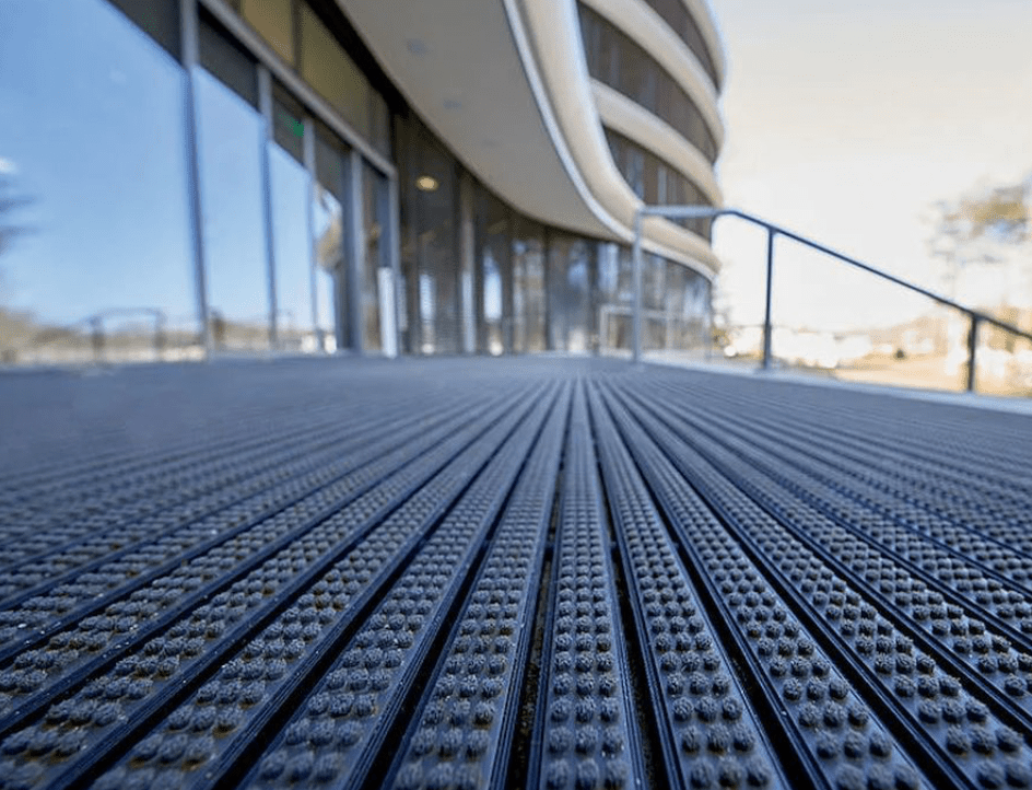 + Trittfläche: eingelassene, widerstandsfähige, witterungsbeständige Cassettenprofile,