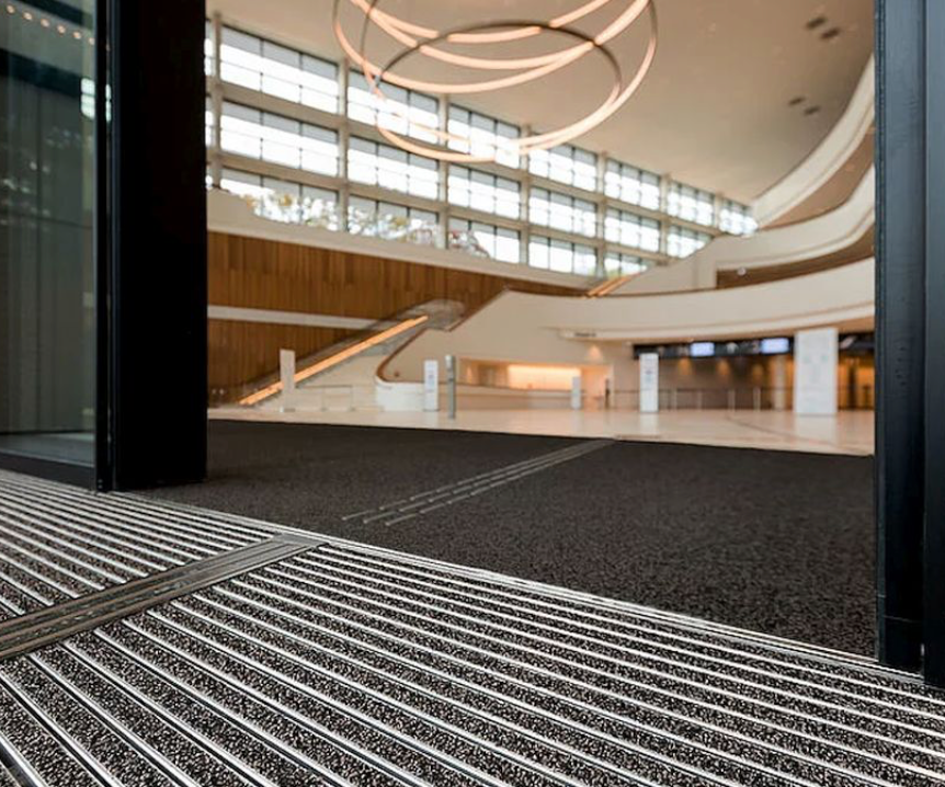 + Brandverhalten: Brandverhalten der kompletten Mattenanlage nach EN 13501 in Cfl-s1