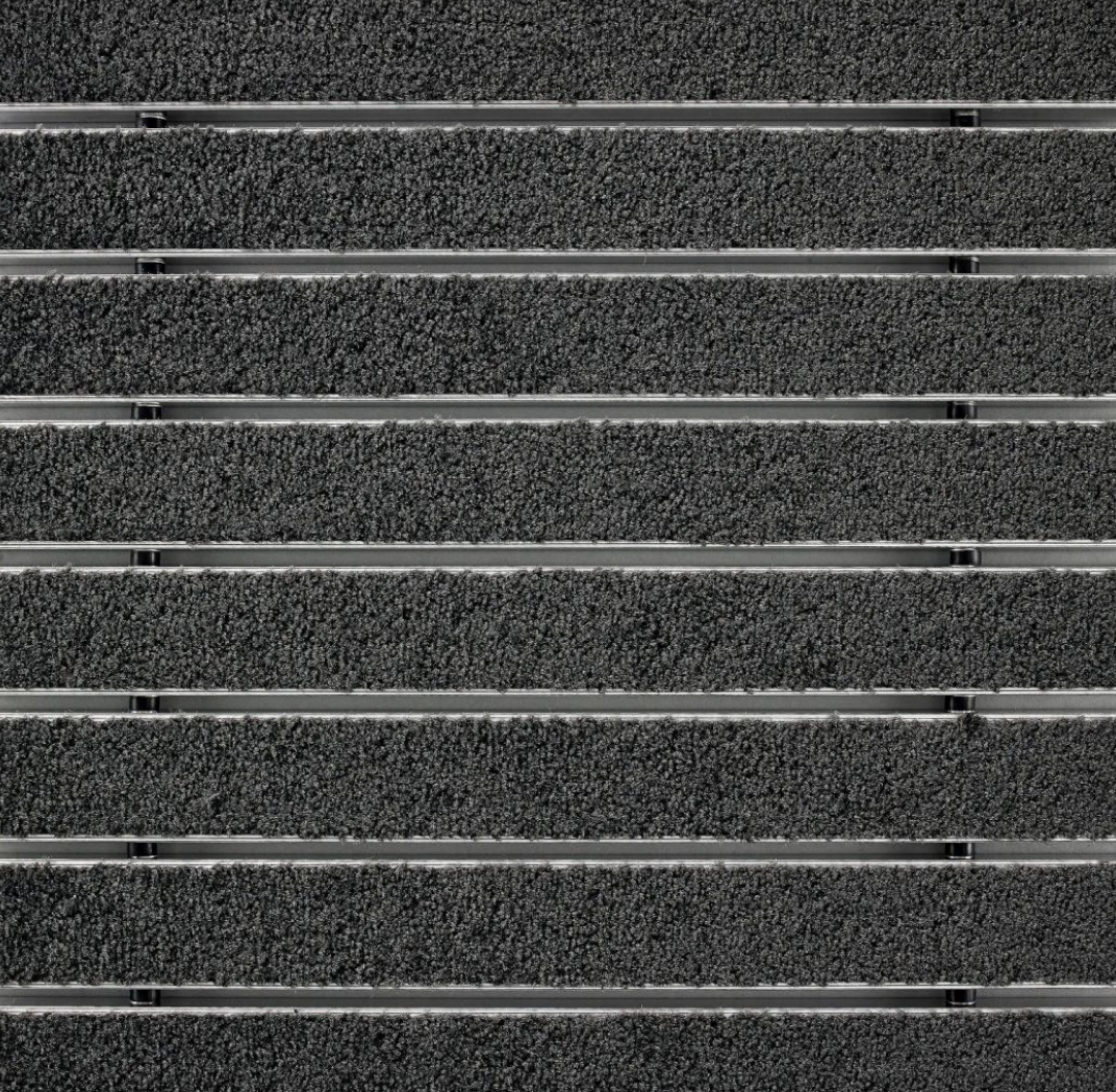 + Trittfläche: eingelassene, widerstandsfähige MAXIMUS-Einlagen in Bfl-S1 - Qualität (Sauberlaufbelag