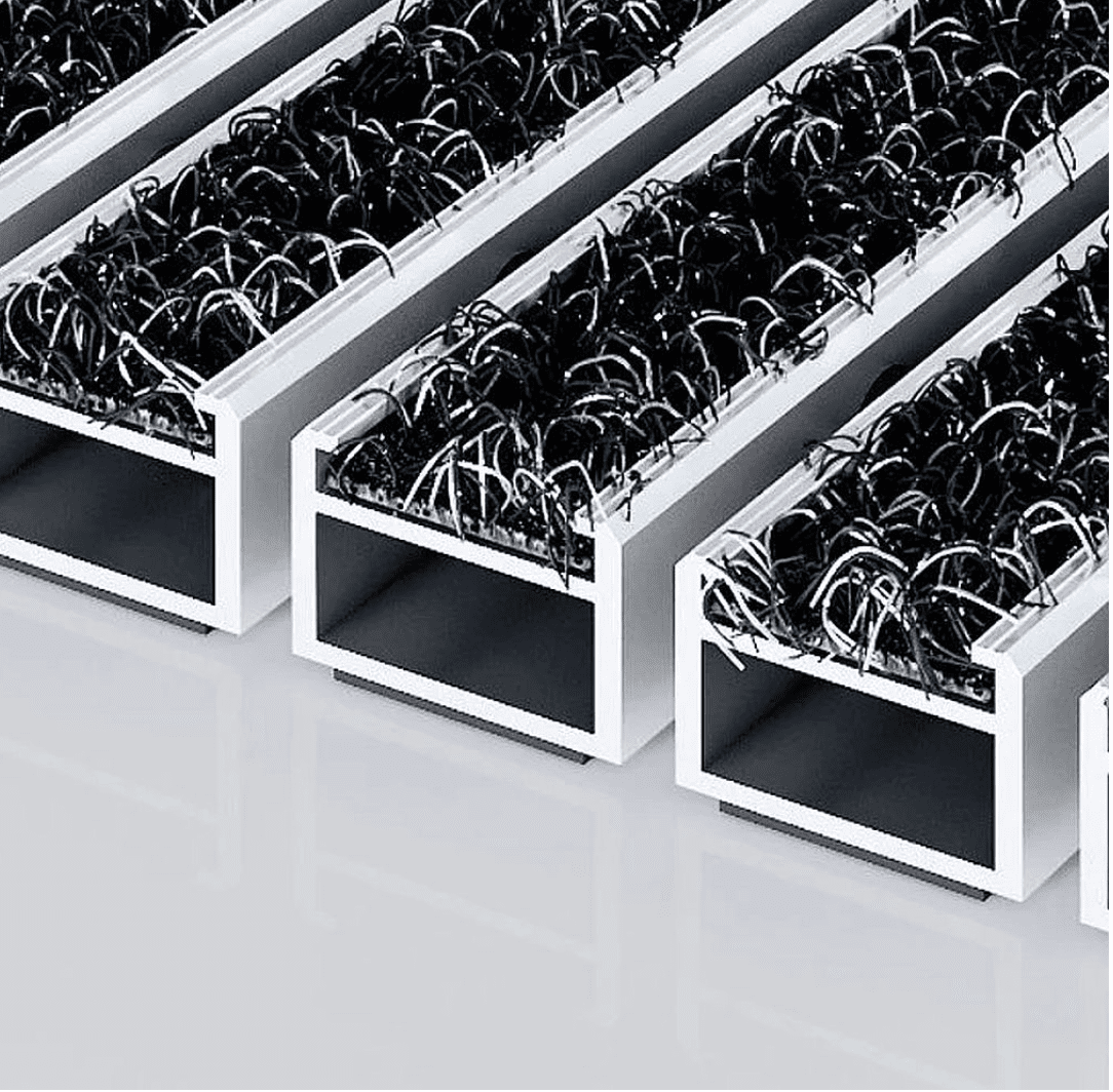 + Trägerprofil: verstärkte Trägerprofile aus verwindungssteifem Aluminium mit unterseitiger