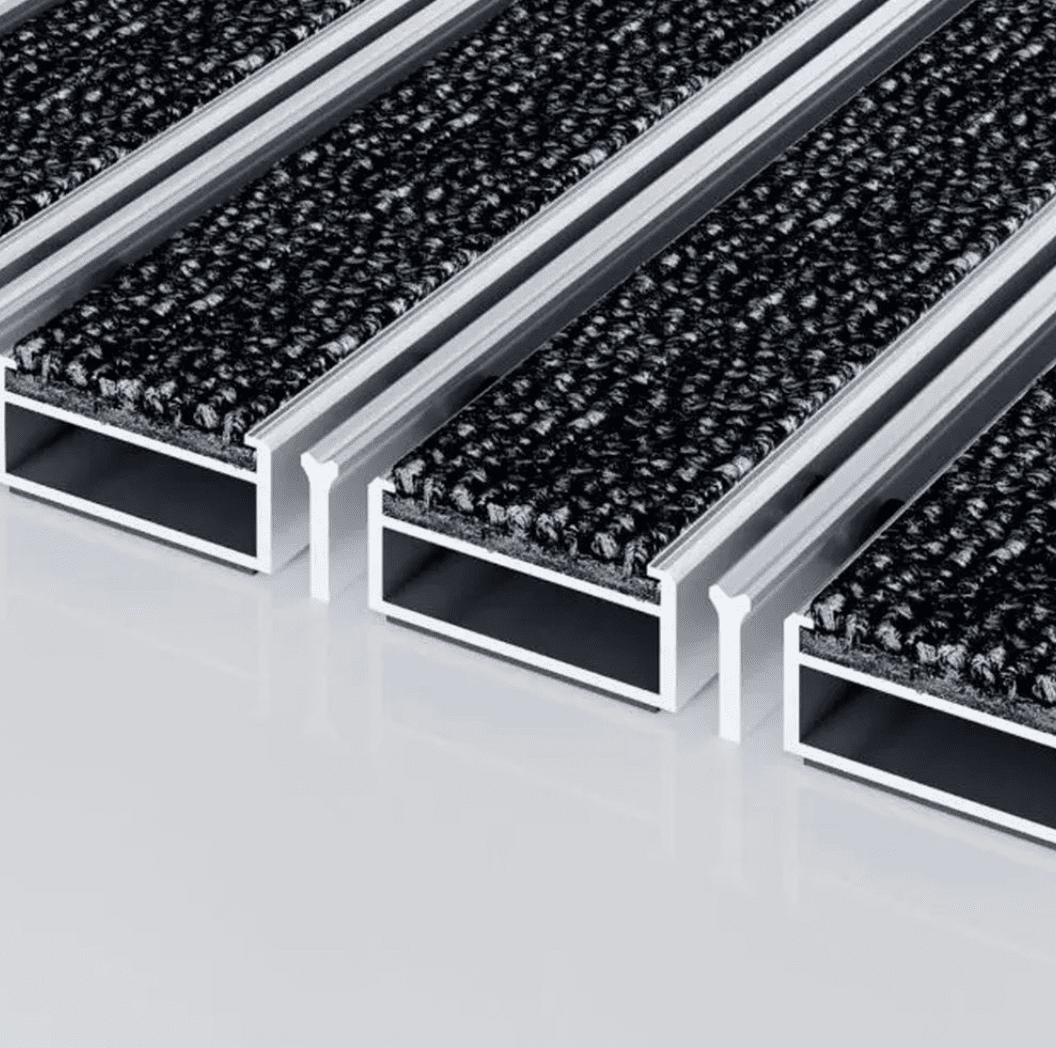 + Trittfläche: Die robuste und äußerst abriebfeste Care-Einlage für eine effektive Reduzierung von Feinschmutz.