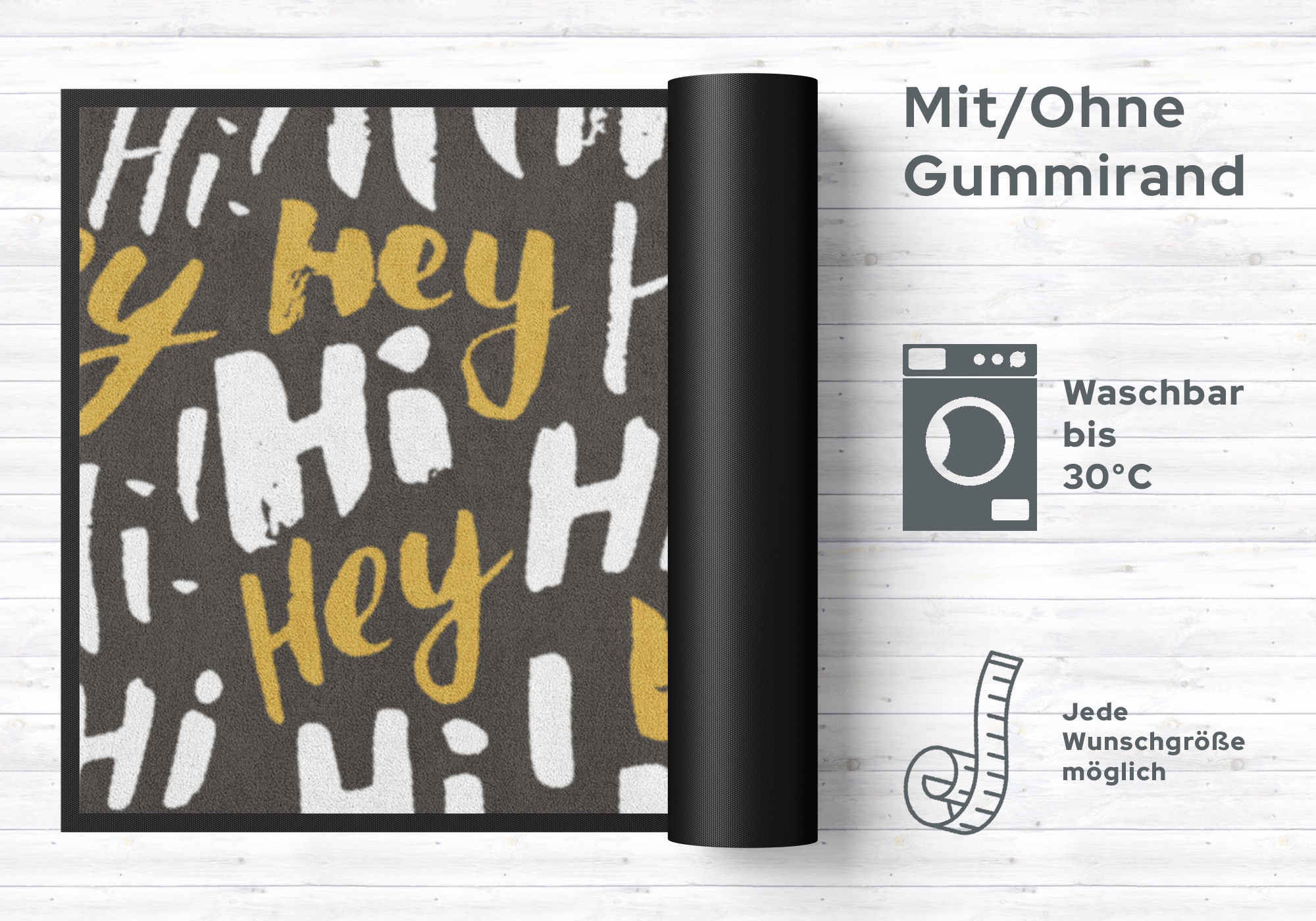 Mit dieser Fussmatte Hi Hey 4752 zaubern Sie nicht nur Ihren Besuchern ein Lächeln ins Gesicht. Diese sehr hochwertige Türmatte ist reissfest, knitterfrei, waschbar. Da sie mit 7 mm Gesamthöhe sehr flach ist, passt sie unter fast jede Tür. Die Fussmatte ist Schadstoffgeprüft und für Allergiker geeignet. Sie erhalten 5 Jahre Herstellergarantie.