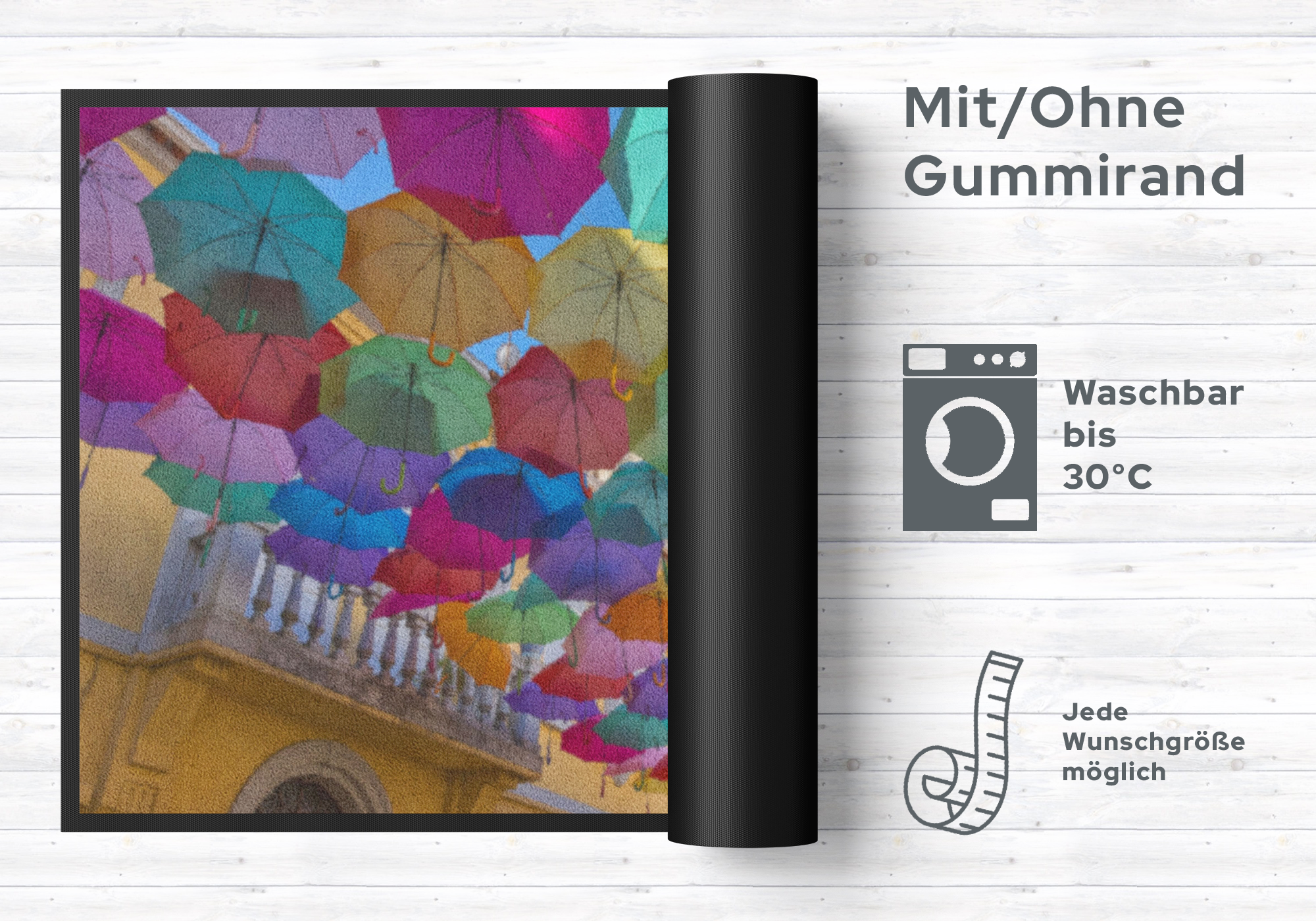 Mit dieser Fussmatte Schirme 4858 zaubern Sie nicht nur Ihren Besuchern ein Lächeln ins Gesicht. Diese sehr hochwertige Türmatte ist reissfest, knitterfrei, waschbar. Da sie mit 7 mm Gesamthöhe sehr flach ist, passt sie unter fast jede Tür. Die Fussmatte ist Schadstoffgeprüft und für Allergiker geeignet. Sie erhalten 5 Jahre Herstellergarantie.