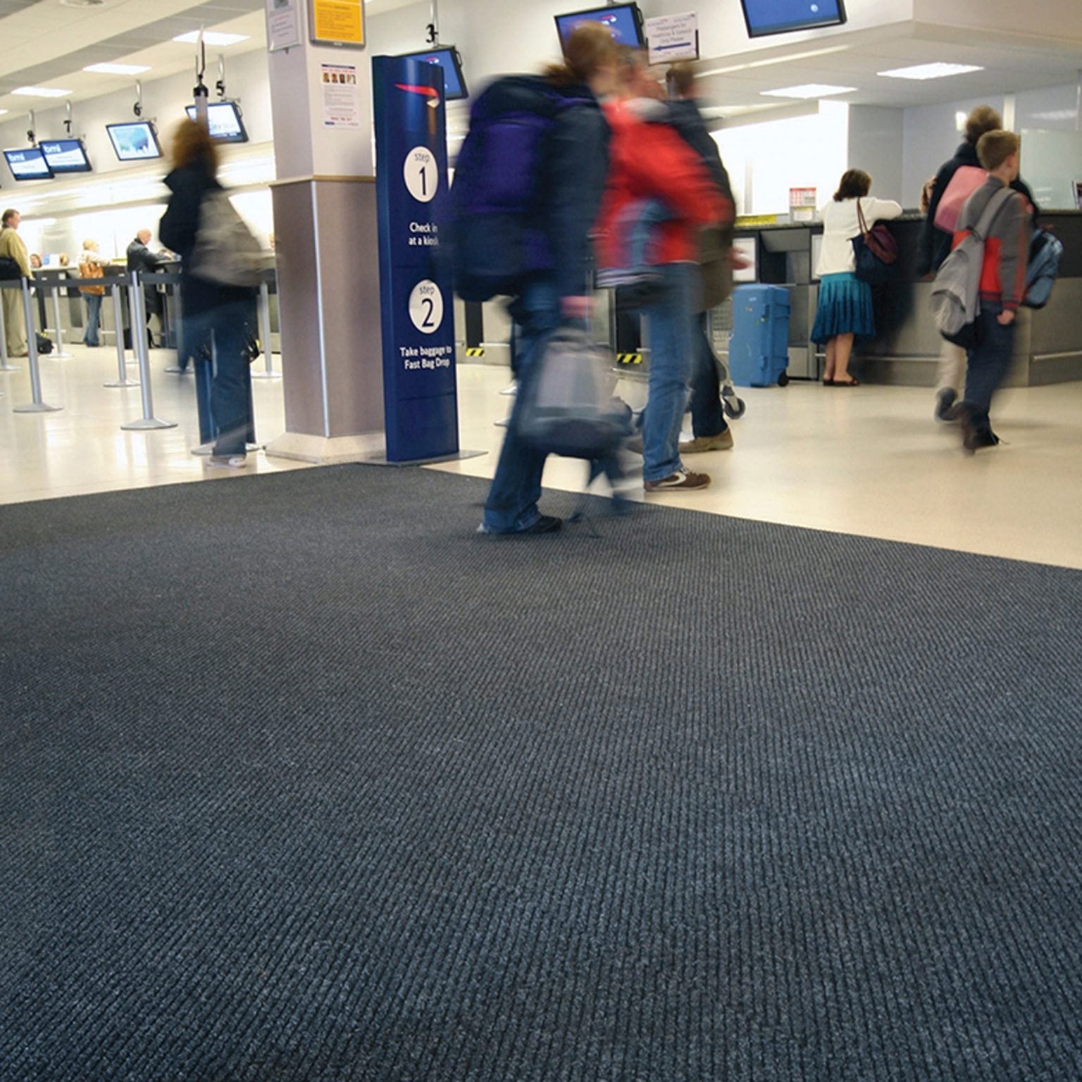 - Die diagonal gerippte Oberfläche der Schmutzschleuse nimmt Schmutz und Nässe zuverlässig auf.