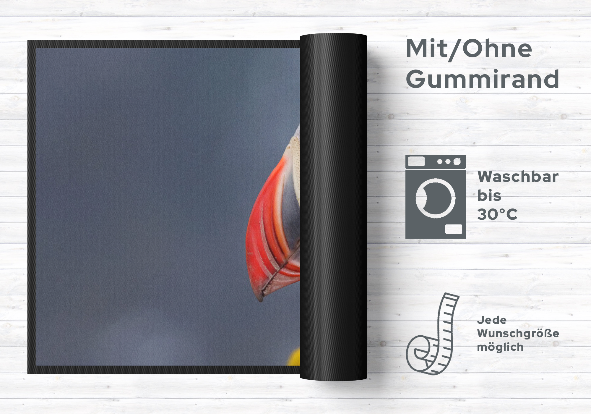 Pflegetipps: Waschen Sie die Fußmatte 10686 separat bei 40° Temperatur mit Feinwaschmittel, schleudern diese auf niedriger Stufe, dadurch richten sich die Fasern auf, der Mattenflor wird aktiviert und transportbedingte Falten und Knicke werden wieder glatt. Pflegen Sie so Ihre Fußmatte regelmäßig und Sie werden überrascht sein, wie viele Jahre Qualität und Farbe erhalten bleiben. Rückgaberecht ausgeschlossen, da es sich um eine individuelle Fussmatte handelt.