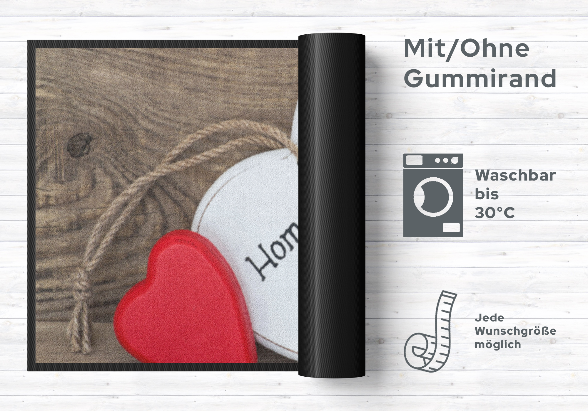 Mit dieser Fussmatte Home is 4736 zaubern Sie nicht nur Ihren Besuchern ein Lächeln ins Gesicht. Diese sehr hochwertige Türmatte ist reissfest, knitterfrei, waschbar. Da sie mit 7 mm Gesamthöhe sehr flach ist, passt sie unter fast jede Tür. Die Fussmatte ist Schadstoffgeprüft und für Allergiker geeignet. Sie erhalten 5 Jahre Herstellergarantie.